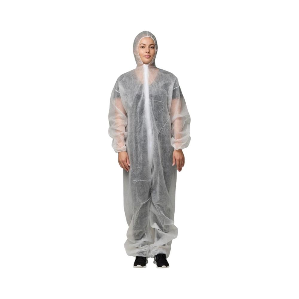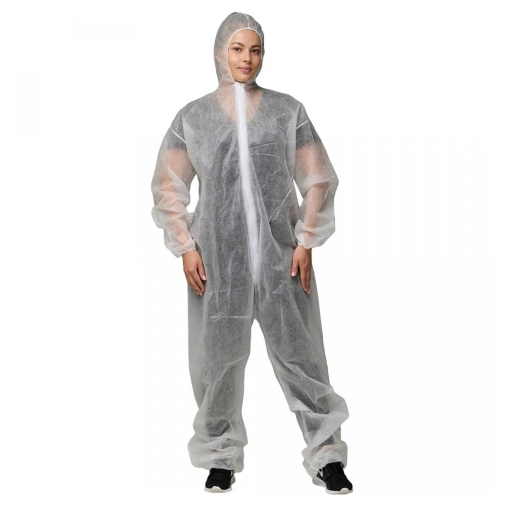 Универсальный одноразовый комбинезон с капюшоном Каспер белый (размер 60-62, 3XL). Изготовлен из высококачественного спанбонда плотностью 30 г/кв.м. Состав спанбонда — 100% полипропилен. Благодаря вшитой молнии, комбинезон обеспечивает надежную защиту и комфорт в течение всего рабочего дня. Он одноразовый и нестерильный, что делает его удобным и практичным в использовании. Предназначен для использования в различных отраслях промышленности для защиты от общепроизводственных загрязнений. Обеспечивает безопасность и гигиеничность рабочего процесса. Характеристики: Плотность: 30 г/м.кв.; Размер: 60-62 (3XL); Размер: 178*150 см. Материал: спанбонд (100% полипропилен); Застежка: молния. Условия хранения: Хранить в крытых сухих складских помещениях на расстоянии не менее 1 м от нагревательных приборов в условиях, исключающих воздействие агрессивных сред (кислотной, щелочной и др.), а также легковоспламеняющихся и горючих жидкостей. Изделия должны быть защищены от прямого воздействия солнечного света. Срок годности не ограничен при соблюдении условий хранения.