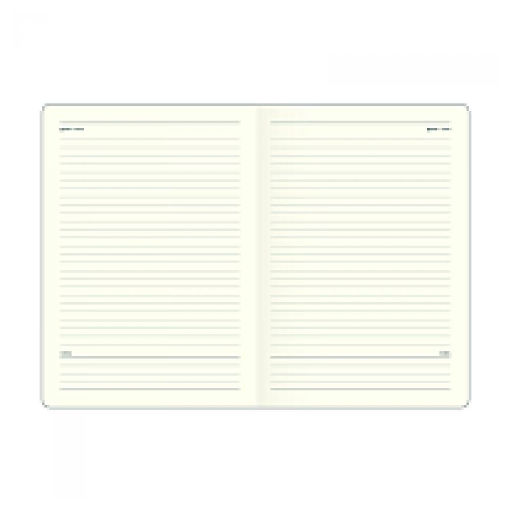 Обложка - мягкая с горизонтальной резинкой, фактурная искусственная кожа с блинтовым тиснением Бумага: слоновая кость, скругленные уголки, 70 г/м2 Блок - линейка Кармашек 320 страниц 2 ляссе Особенности: резинка, ляссе и прокрас обреза блока в цвет обложки.