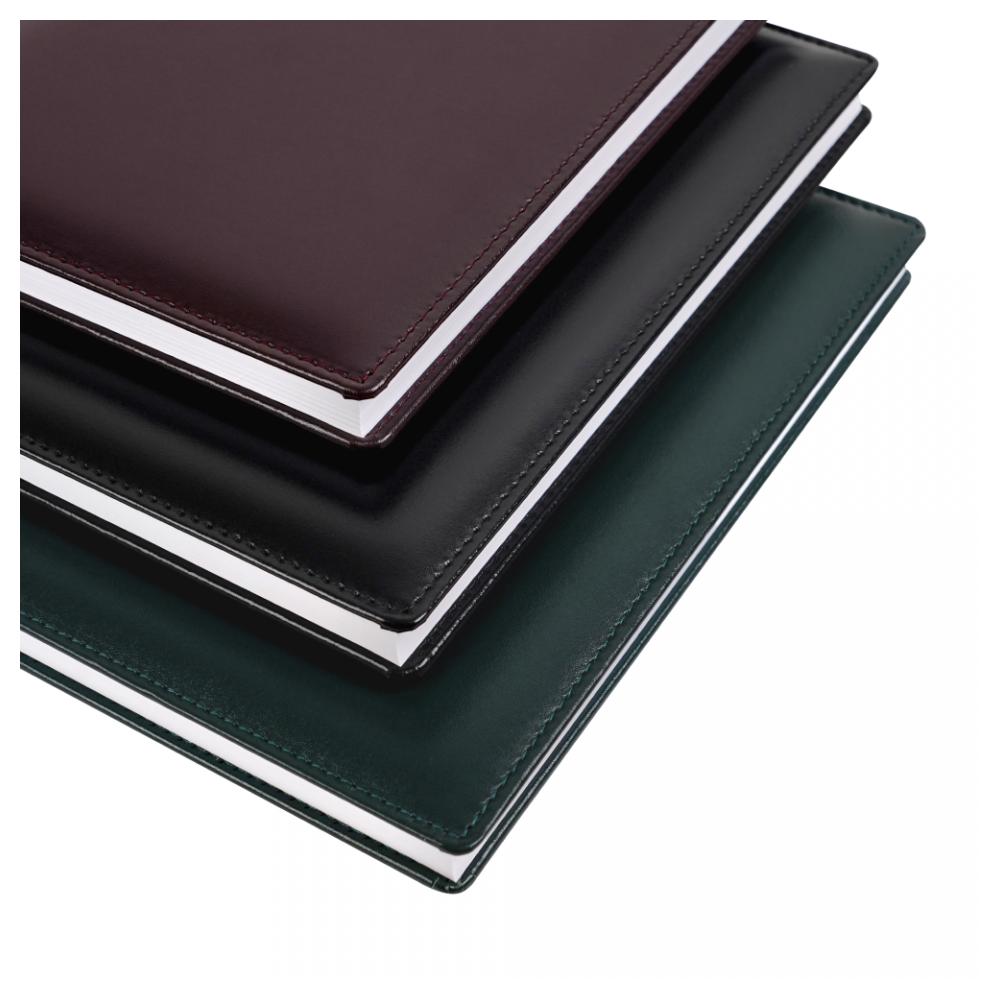 Недатированный ежедневник Pelle Siena в твердой обложке с поролоном. Формат А5, размер 145*205 мм. Обложка со скругленными углами из высококачественной натуральной кожи. В блоке углы прямые. Форзацы белого цвета. Блок из белой гладкой FSC бумаги плотностью 70 гр., печать в 1 цвет - серый Pantone 404U. Шелковая закладка-ляссе серого цвета. Подходит под нанесение логотипа тиснением. Произведено в Италии.
