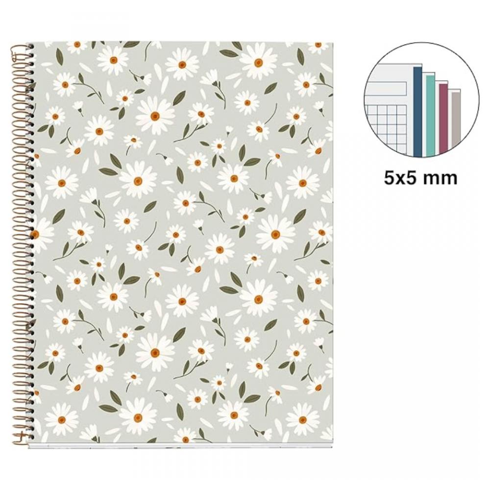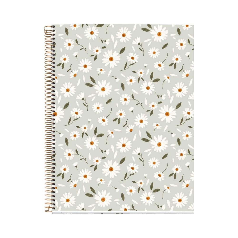 Блокнот формата А4: с 4 полосами разных цветов, что позволяет легко организовать записи по темам или разделам. Содержит 100 листов, по 25 листов каждого цвета с микроперфорацией для удобного начала работы и 4 отверстиями для архивирования. Этот блокнот входит в коллекцию «Весенние цветы», известную своими нежными пастельными тонами и элегантным цветочным узором, в котором главную роль играют нежные ромашки. ВНУТРЕННЯЯ ПОЛОСА - Этот блокнот имеет квадратную форму и специальное поле для заголовков, что облегчает организацию и идентификацию разделов внутри блокнота. Высококачественная офсетная печать обеспечивает большую четкость и чистоту линий, что улучшает качество письма и облегчает чтение. Размер листа: 210 x 297 мм (A4). В нашем блокноте используется высококачественная сверхплотная бумага плотностью 70 г/м². Качество нашей бумаги обеспечивает плавное письмо и исключительную прочность, предотвращая растекание чернил. Быстросохнущая бумага предотвращает растекание чернил и появление пятен на ваших записях. ОБЛОЖКА - Изготовлена из прочного картона с матовым ламинированием, что обеспечивает блокноту исключительную прочность, гибкость, легкость и долговечность. Система переплета представляет собой непрерывную спираль с технологией COIL-LOCK, которая позволяет полностью переворачивать блокнот без риска зацепиться. Листы изготовлены из экологически чистой бумаги, что означает их вклад в сохранение окружающей среды. Они имеют сертификат FSC Mix Credit, гарантирующий, что используемый материал получен из лесов, управляемых в соответствии с принципами устойчивого развития. Кроме того, важно отметить, что этот блокнот изготовлен в Испании.
