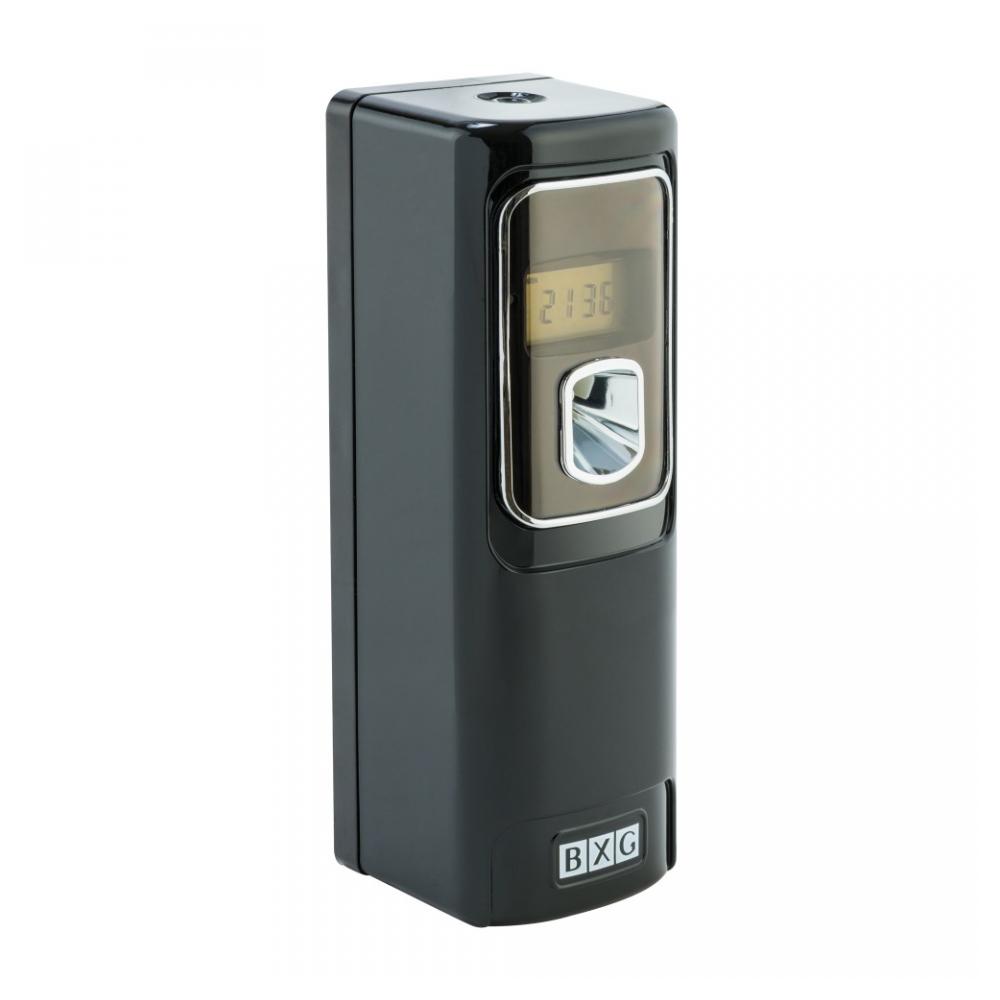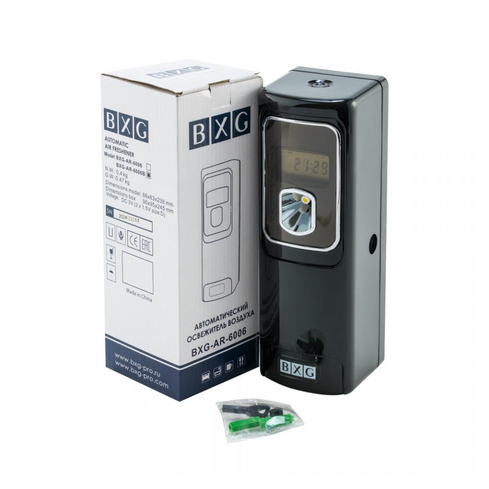 Диспенсер BXG-AR-6006B предназначен для ароматизации воздуха и поглощения неприятных запахов в туалетных и ванных комнатах, а также в любых других комнатах жилых и нежилых помещений. Представляет из себя устройство для распыления, в которое вставляется сменный баллон с ароматизатором. Устройство можно запрограммировать в зависимости от особенностей помещения: интервал срабатываний (освежитель может распыляться с интервалом от 1 до 60 минут); часы начала и окончания работы устройства в течение суток; дни недели, включая или исключая выходные. Преимущества: Корпус ароматизатора закрывается на ключ для предотвращения хищений баллонов с освежителем воздуха и батареек. Работа от батареек делает устройство независимым от наличия электроподключения в помещении, а небольшие размеры и вес позволяют установить освежитель в любом месте. Работает от двух батареек типа D/LR20. Подходит для баллонов типа ЕВРО от 250 мл до 320 мл. Характеристики: Цвет: черный; Напряжение питания: батарейки 1,5 Вт x 2 (тип LR20D); Материал корпуса: ABS-пластик; Цвет корпуса: черный; Покрытие поверхности: глянец; Размер изделия (ШхГхВ): 86х83х238 мм; Вид установки: настенный / возможно использование без крепления; Механизм работы: автоматический; Режимы работы: день / ночь / 24 часа. С данным товаром покупают: Батарейки алкалиновые Mirex 1,5 V LR20/D пленка, 2 шт. (арт. 9196226); Батарейки алкалиновые Mirex 1,5 V LR20/D, 2BP, 2 шт. (арт. 9129396); Освежитель воздуха До-Ре-Ми аэрозоль Премиум Дыхание моря 250мл (сменный баллон) (арт. 9001252); Освежитель воздуха До-Ре-Ми аэрозоль Премиум Кофе 250мл (сменный баллон) (арт. 9038534); Освежитель воздуха Glade Automatic сменные аэрозольные баллоны Океанский оазис 269мл (арт. 9024638); Освежитель воздуха Glade Automatic сменные аэрозольные баллоны Свежесть утра 269мл (арт. 9023971); Освежитель воздуха OfficeClean сменные аэрозольные баллоны Свежесть океана 250мл (арт. 9070617); Освежитель воздуха OfficeClean сменные аэрозольные баллоны Весенняя сакура и сладкий миндаль 250мл (арт. 9096705); Освежитель воздуха OfficeClean сменные аэрозольные баллоны Солнечный цитрус 250мл (арт. 9096703). Условия и сроки хранения: Хранить при температуре не выше +35°С. Защищать от действия прямых солнечных лучей. Срок хранения не ограничен при соблюдении условий хранения.