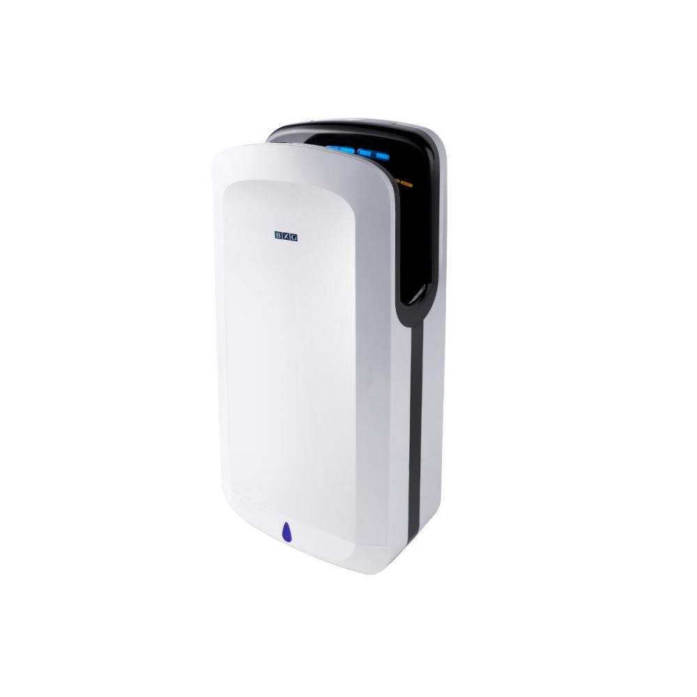 BXG-JET 7200 UV – высокоскоростная сушилка для рук с функцией обеззараживания воздуха Ultraviolet Cleanse нового поколения. Выполнена из высокопрочного пластика ABS. Внедрена передовая трехступенчатая система очистки подаваемого воздуха, включая систему обеззараживания воздуха Ultraviolet Cleanse: 1. Предварительная очистка воздуха – крупнодисперсные частицы, находящиеся в воздухе, задерживаются фильтром грубой очистки; 2. Глубокая очистка воздуха – встроенный НЕРА фильтр задерживает около 99% бактерий, вирусов, аллергенов, а так же мелкодисперсные частицы пыли из воздуха туалетной комнаты; 3. Ultraviolet Cleanse – обеззараживание подаваемого воздуха за счет Ультрафиолетовой стерилизации – в результате облучения происходит инактивация 99% бактерий и вирусов. Система сконструирована таким образом, что позволяет стерилизовать не только подаваемый воздух, но и НЕРА фильтр, что предотвращает размножение плесени и других микроорганизмов в самом аппарате. Производительность: Установлен инновационный двигатель – скорость воздушного потока составляет 150 м/сек при номинальной его мощности 700 Вт., при этом уровень шума всего 65 ДБ. Благодаря этому руки становятся сухими менее чем за 5-7 секунд. В устройстве 2 скоростных и 2 температурных режима: горячий (принудительный) и автоматический, при котором сушилка сама определит необходимую комфортную температуру, подаваемую на руки, в зависимости от температуры окружающей среды. Для скрытого подключения питания на задней крышке предусмотрен блок и теперь нет необходимости в полном разборе сушилки. Усовершенствованная дренажная система: 1. Все элементы сушилки, для которых наиболее высок риск образования микробов, плесени и грибков, имеют дополнительное антибактериальное покрытие. 2. Сушилка оснащена датчиком наполнения водосборного поддона. Когда водосборник наполнится водой, загорится индикатор, расположенный на крышке блока переключателей, указывая о необходимости очистки водосборника. Для того чтобы очистить водосборник от наполненной воды, необходимо нажать на клапан в нижней части водосборника и слить воду. 3. Возможность подключения дренажной системы к скрытой канализационной системе: при наполнении водосборного поддона водой срабатывает датчик и загорается индикатор, и вода сливается в дренажную систему. Безопасность. BXG-JET-7200 UV обладает высоким классом влагозащиты – IPX4 (исключено попадание влаги внутрь устройства со всех сторон) и возможность короткого замыкания или удара электрическим током при правильной эксплуатации исключена. Благодаря ИК-датчикам и технологии микропроцессорного управления осуществляется независимый контроль, который предотвращает слишком долгое использование сушилки или использование не по назначению. Прибор оснащён устройством автоматического отключения на случай перегрева, короткого замыкания или скачков напряжения в электросети. Экологичность. Сушилка изготовлена из высококачественных материалов, которые полностью безопасны и нетоксичны. Низкий уровень потребляемой мощности с возможностью отключения нагрева воздуха и быстроты сушки рук позволяет экономить электроэнергию. Характеристики: Напряжение питания: 220В±5% (50-60 Гц); Мощность двигателя/номинальная: 700/1650 Вт; Степень влагозащиты: IPX4; Максимальная скорость воздушного потока: 150 м/с; Температурный режим: г