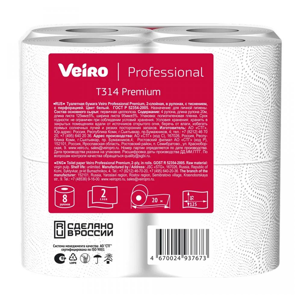 Бумага туалетная Veiro Professional Premium в рулонах, 8 рул, 20м, 2 слоя