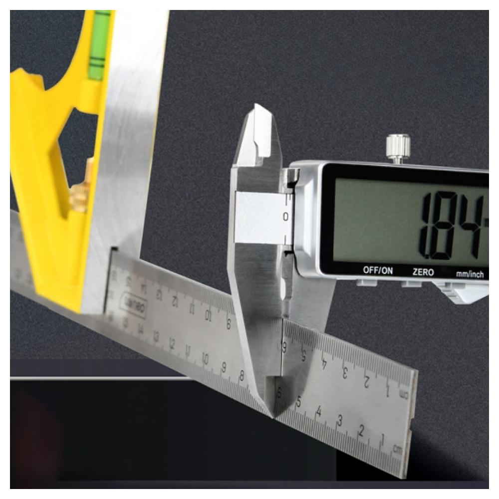 Строительная линейка с угольником и уровнем Deli YS DL7300 длиной 300 мм (12 дюймов) - удобный инструмент для точных измерений и разметки под углом. Лезвие шириной 25 мм и толщиной 2,0 мм выполнено из нержавеющей стали, что обеспечивает долговечность и устойчивость к коррозии. Инструмент оснащён встроенным уровнем и угольником для удобства при строительных и отделочных работах. Поставляется в блистерной упаковке.