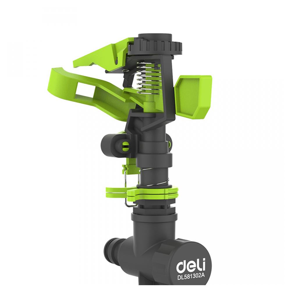 Этот импульсный распылитель Deli EDL581302A — интеллектуальный ороситель для вашего сада, созданный для равномерного и бережного полива. Благодаря импульсному механизму и пластиковой пике он мягко распределяет воду по заданному радиусу, имитируя естественный дождь без резких потоков, способных повредить нежные растения.