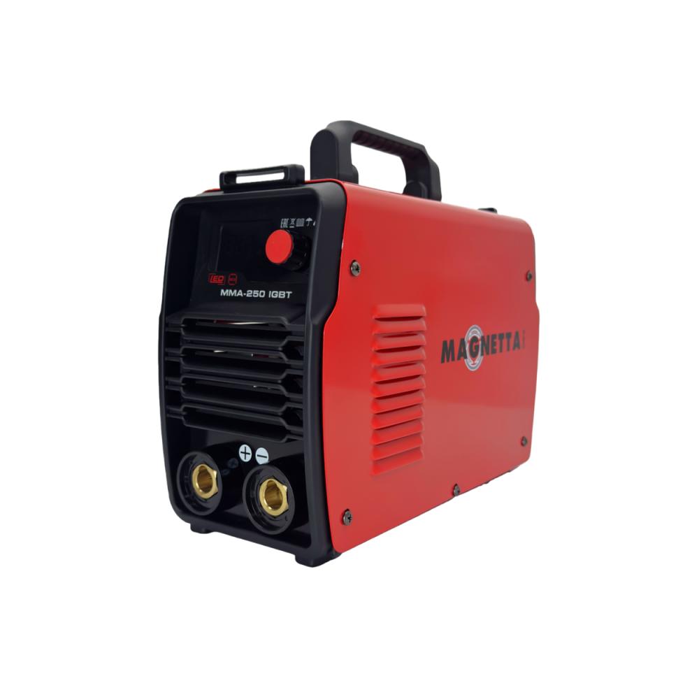 Magnetta MMA-250 IGBT LED — это надёжный и компактный сварочный аппарат для ручной дуговой сварки (MMA), созданный с применением современной IGBT-технологии. Он обеспечивает стабильную сварочную дугу, высокую производительность и минимальное разбрызгивание металла, что особенно важно при работе с тонкими и сложными заготовками. Благодаря малому весу и компактным габаритам, аппарат удобен для транспортировки и использования в ограниченном пространстве, включая высотные работы и выездные задачи. Модель оснащена цифровым LED-дисплеем для точного контроля параметров, а также системой принудительного воздушного охлаждения, которая предотвращает перегрев и обеспечивает стабильную работу даже при интенсивной нагрузке. Диапазон сварочного напряжения от 20,4 до 32 В и сварочного тока от 10 до 180 А позволяет использовать электроды диаметром от 1,6 до 5 мм, что делает аппарат универсальным для различных типов сварки и материалов. Основные характеристики: Тип сварки: MMA (ручная дуговая) Сварочный ток: 10–180 А Напряжение сварки: 20,4–32 В Диаметр электрода: 1.6–5.0 мм Напряжение сети: 220 В ±10% Частота: 50/60 Гц КПД: 84% Рабочий цикл: 30% при 180 А Напряжение холостого хода: 80 В Класс защиты: IP21S Охлаждение: вентилятор + воздушное Габариты: 265 × 125 × 190 мм Вес: 3.8 кг