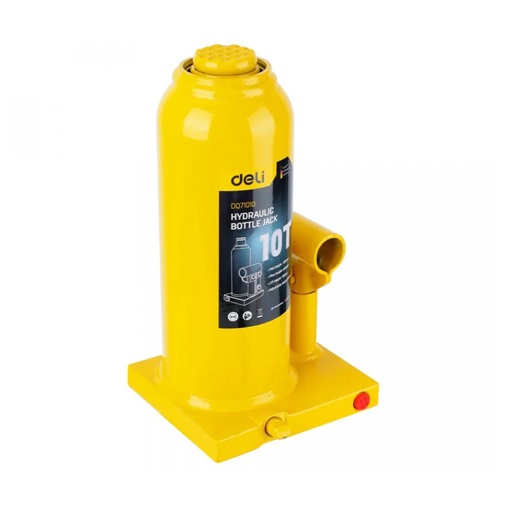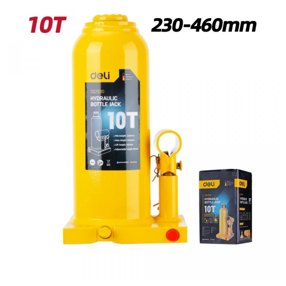 Гидравлический бутылочный домкрат Deli DQ71010 - это незаменимый инструмент для автолюбителей и профессионалов в области ремонта и обслуживания автомобилей. Он идеально подходит для подъема легковых и грузовых автомобилей, внедорожников и других транспортных средств, обеспечивая надежность и безопасность при работе. Максимальная грузоподъёмность: 10 тонн. Высота подхвата (минимальная высота подъема) : 230 мм - данная высота позволяет использовать домкрат даже в пределах ограниченного пространства. Максимальная высота подъема: 460 мм - обеспечивает оптимальную высоту для выполнения различных работ под автомобилем. Рабочий ход: 150 мм - это максимальное расстояние, на которое выдвигается шток домкрата. Длина выдвижного винта: 80 мм - данная длина позволяет комфортно настроить домкрат в зависимости от особенностей автомобиля. Домкрат изготовлен из высококачественной стали, что гарантирует его долговечность и прочность. Особое внимание уделено безопасности: устройство оборудовано предохранительным клапаном, который предотвращает случайный сброс давления и обеспечивает защиту от перегрузок, что крайне важно при подъеме тяжелых автомобилей. Широкая и прочная подставка обеспечивает надежное удержание транспортного средства, минимизируя риск опрокидывания или соскальзывания домкрата в процессе работы. Это делает гидравлический бутылочный домкрат идеальным выбором как для профессионалов, так и для любителей. Технические характеристики: Количество штоков - 1 Рабочий ход -150 мм Ход выдвижного винта - 80 мм Материал корпуса - сталь Диаметр опоры - 37 мм Телескопический - нет Горизонтальная работа - нет Предохранительный клапан - да Размер основания - 120 х 110 мм Преимущества: Сварная конструкция домкрата Предохранительный клапан Широкое кованое основание Двойная электрохимическая полировка штока Полиуретановые кольца в уплотнителях