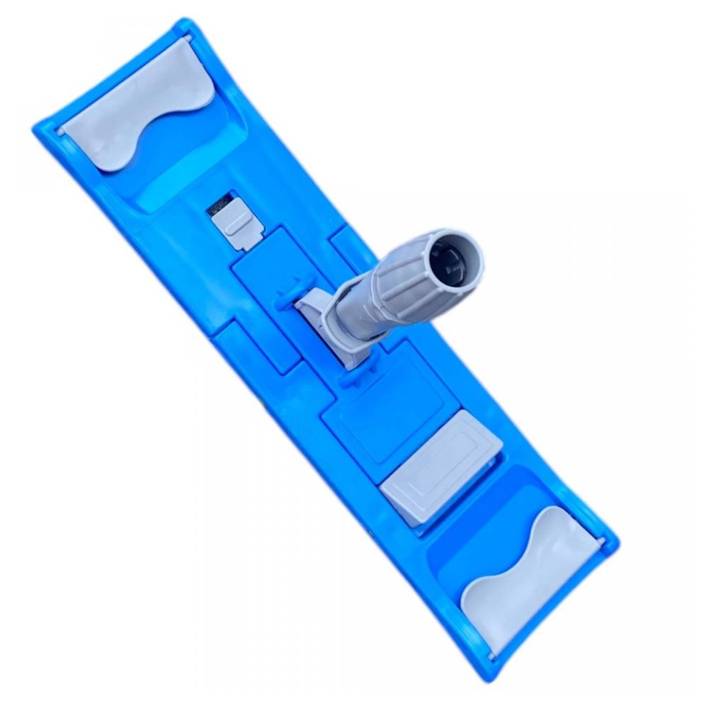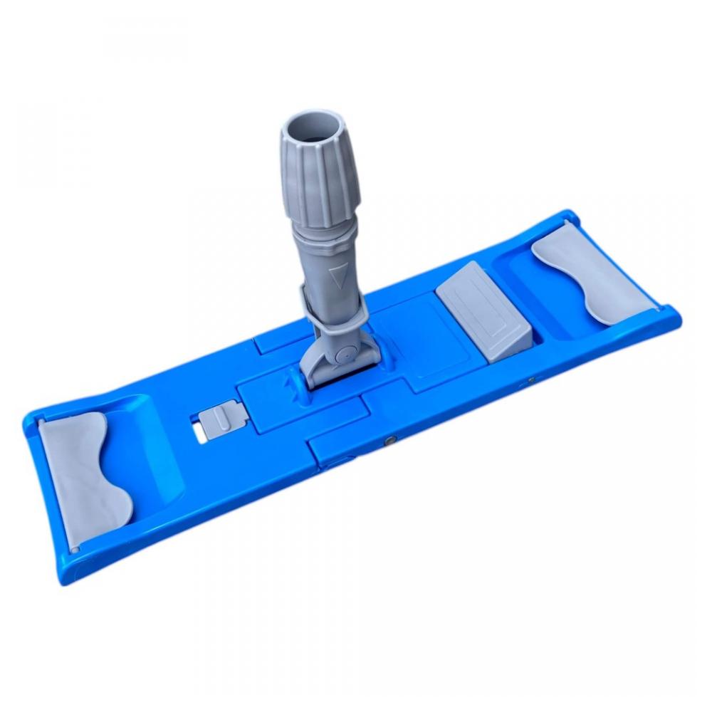Держатель для насадок универсальный (подходит для насадок с карманами и ушками). Отличается большой поверхностью прилегания к полу, малым весом, подвижностью и прочностью шарнира. Держатель изготовлен из ударопрочного пластика, рассчитанный на ежедневные постоянные нагрузки. Для того, чтобы снять насадку с держателя, потребуется всего лишь нажать на зажим. Универсальное зажимное кольцо даёт возможность использовать под держатель любую ручку, имеющую наружный диаметр от 18 до 24 мм, также возможно использовать ручки со сквозным отверстием – для этого держатель комплектуется скобой. К данному держателю подходят следующие ручки: Ручка для МОПа алюминиевая 130см, d=22мм, цв.желтый (арт. 9175320); Ручка для МОПа алюминиевая 130см, d=22мм, цв.зеленый (арт. 9175319); Ручка для МОПа алюминиевая 130см, d=22мм, цв.красный (арт. 9175318); Ручка для МОПа алюминиевая 130см, d=22мм, цв.синий (арт. 9175317); Ручка для МОПа алюминиевая с резьбой 140см, d=23мм, цв.желтый (арт. 9175328); Ручка для МОПа алюминиевая с резьбой 140см, d=23мм, цв.зеленый (арт. 9175327); Ручка для МОПа алюминиевая с резьбой 140см, d=23мм, цв.красный (арт. 9175326); Ручка для МОПа алюминиевая с резьбой 140см, d=23мм, цв.синий (арт. 9175325); Ручка для МОПа алюминиевая с резьбой, 130см, d=22мм, цв.желтый (арт. 9175321); Ручка для МОПа алюминиевая с резьбой, 130см, d=22мм, цв.зеленый (арт. 9175324); Ручка для МОПа алюминиевая с резьбой, 130см, d=22мм, цв.красный (арт. 9175323); Ручка для МОПа алюминиевая с резьбой, 130см, d=22мм, цв.синий (арт. 9175322). К данному держателю подходят следующие насадки 40 см: Насадка для плоской швабры 40 см комбинированная, микроволокно, карманы-языки (арт. 9055653). Насадка для плоской швабры 40*11 см комбинированная тафтинговая серая, карманы (арт. 9055662); Насадка для плоской швабры 40*11 см комбинированная тафтинговая серая, карманы-языки (арт. 9055663); Насадка для плоской швабры 40*11 см комбинированная тафтинговая серая, карманы-языки (арт. 9209563); Насадка для плоской швабры 40*11 см комбинированная тафтинговая серая, карманы-языки (арт. 9055648); Насадка для плоской швабры 40*11 см комбинированная, карманы (арт. 9055659); Насадка для плоской швабры 40*11 см комбинированная, карманы-языки (арт. 9055660); Насадка для плоской швабры 40*11 см микроволокно двуслойная петельная серая, карманы (арт. 9131008); Насадка для плоской швабры 40*11 см микроволокно с напылением, карманы (арт. 9131019); Насадка для плоской швабры 40*11 см микроволокно тафтинговая универсальная, карманы (арт. 9125846); Насадка для плоской швабры 40*11 см микроволокно тафтинговая универсальная, карманы-языки (арт. 9125847); Насадка для плоской швабры 40*11 см микроволокно универсальная, карманы (арт. 9055668); Насадка для плоской швабры 40*11 см микроволокно универсальная, карманы-языки (арт. 9116234); Насадка для плоской швабры 40*11 см микроволокно универсальная, карманы-языки (арт. 9055669); Насадка для плоской швабры 40*11 см микроволокно, с полосами скольжения, карманы (арт. 9055672); Насадка для плоской швабры 40*11 см микроволокно, с полосами скольжения, карманы-языки (арт. 9055673); Насадка для плоской швабры 40*11 см с абразивом, карманы-языки (арт. 9055654); Насадка для плоской швабры 40*11 см хлопок/полиэстер тафтинговая, карманы-языки (арт. 9055657); Насадка для плоской швабры 40*11 см хлопок/полиэстер тафтинговая, карманы-языки (арт. 9116233); Насадка для плоской швабры 40*13 см хлопок/полиэстер петельная, карманы (арт. 9060109); Насадка для плоской швабры 40*13 см хлопок/полиэстер тафтинговая, карманы (