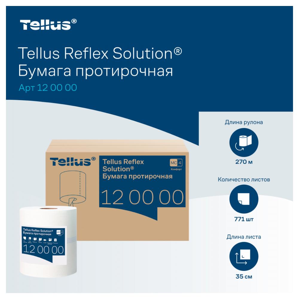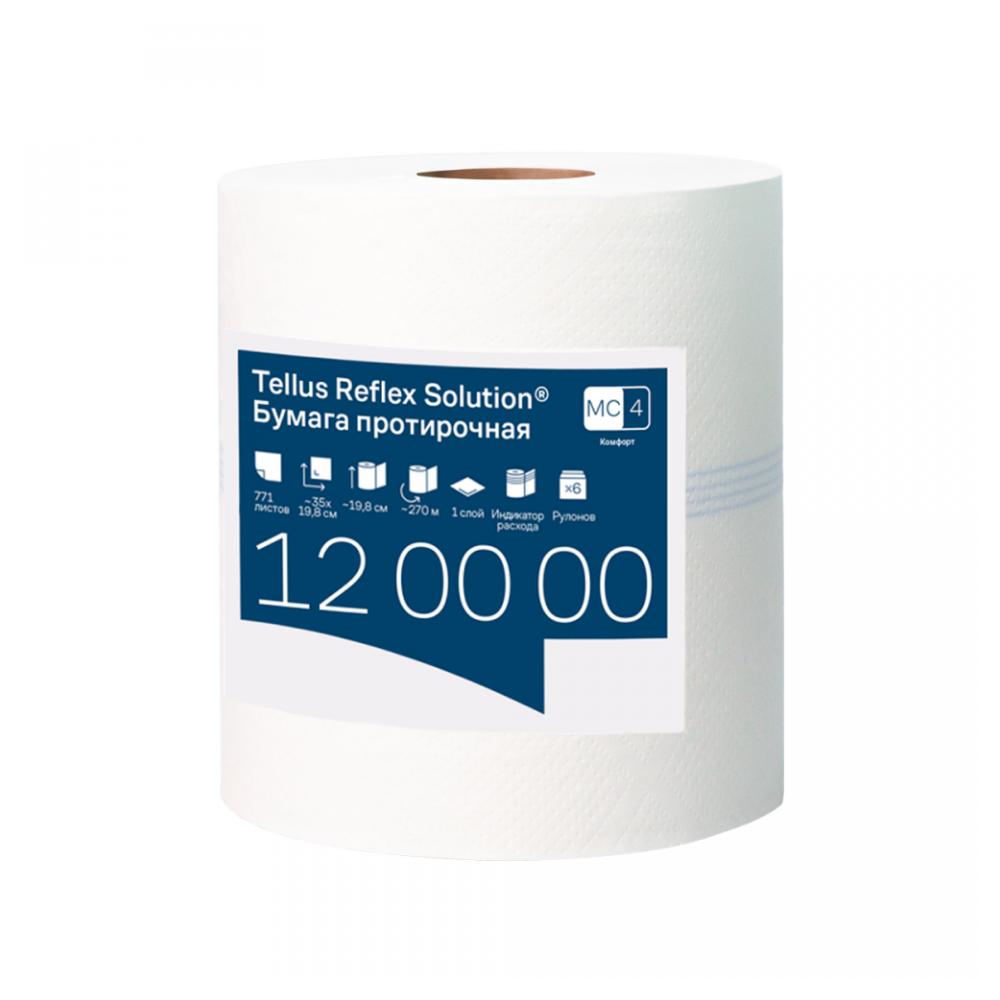 Однослойная универсальная протирочная бумага Tellus Reflex Solution идеально подходит для протирки поверхностей и высушивания рук в производственных, офисных и бытовых помещениях. Хорошо впитывает, не оставляет ворса и разводов при очистке стеклянных поверхностей. Прочная однослойная бумага отличается износостойкостью, что помогает эффективно выполнять задачи по уборке. Индикатор расхода помогает своевременно планировать замену рулона. Предназначена для работы в диспенсерах с центральной вытяжкой. Преимущества: возможность отбора листов одной рукой; благодаря намотке рулона хватает надолго при регулярном использовании; категория качества — Комфорт. Система: M4 / MС4 - Centrefeed Reflex Roll System. Характеристики: Длина рулона: 270 м. Ширина рулона: 19,8 см. Диаметр рулона: 18 см. Количество листов: 771. Длина листа: 35 см. Внутренний диаметр втулки: 5,9 см. Слойность: 1. Материал: 100% целлюлоза. Тиснение: да. Цвет: белый. С данным товаром покупают: Диспенсер TORK Reflex для протирочных материалов в рулонах с центральной вытяжкой пластиковый, белый, M4 (арт. 9198390) Условия и сроки хранения Хранить в закрытых помещениях, защищенных от атмосферных осадков и почвенной влаги, на расстоянии не менее 1 м от отопительных устройств. Срок годности не ограничен.