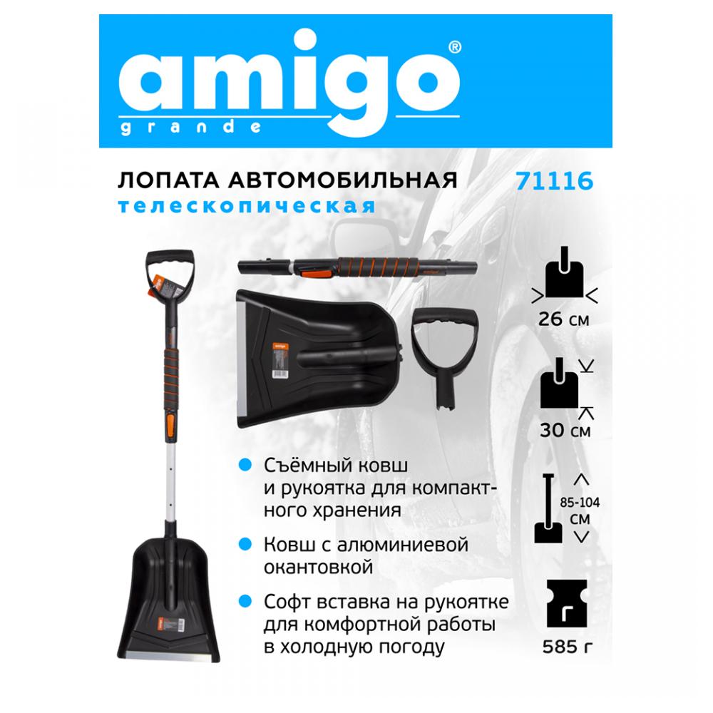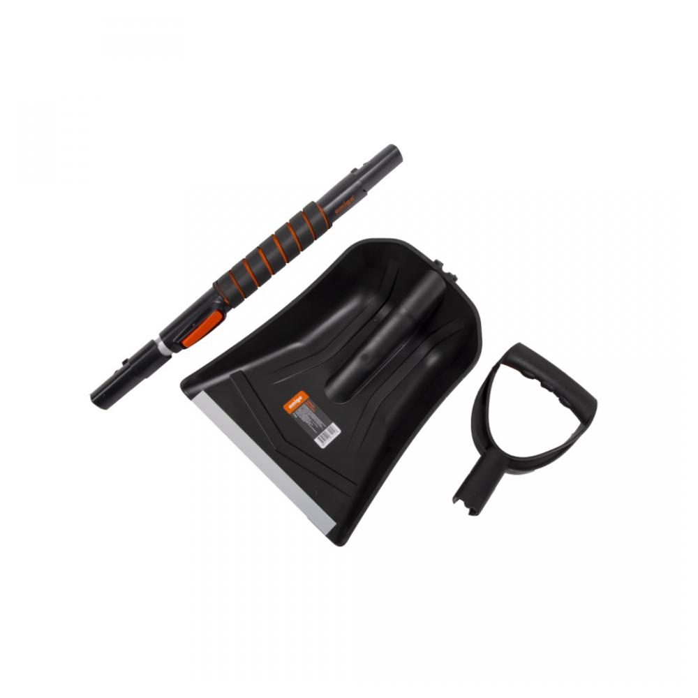 Автомобильная лопата для уборки снега незаменима в различных дорожных ситуациях: при застревании машины в условиях бездорожья, в сложных погодных условиях, а также пригодится для очистки придомовых и окологаражных территорий от рыхлого и плотного снега. Разборная конструкция: съёмный ковш и рукоятка для компактного хранения. Ковш из высококачественного пластика с алюминиевой рабочей кромкой для максимальной прочности. Soft -вставка на рукоятке для комфортной работы в холодную погоду. Телескопическая рукоятка с надёжным фиксатором изменяет длину лопаты от 85 до 104 см. Ширина ковша - 255 мм Высота ковша - 300 мм