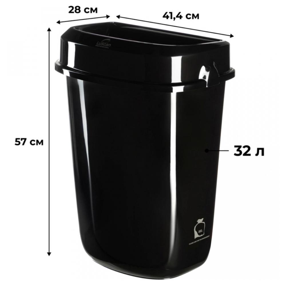 Контейнер для мусора подвесной Luscan Professional 32 л изготовлен из пластика черного глянцевого цвета. Предназначен для сбора бытового мусора и удобен в использовании благодаря настенному креплению. Изготовлен из прочного пластика, внутри располагается кольцо-держатель для мусорного мешка. Характеристики: Объем: 32 л. Материал: полипропилен. Вид крепления: настенное. Размер контейнера: 41.4×28×57 см. Цвет: черный. Внутренний контейнер: нет. Условия и сроки хранения: Хранить при температуре не выше +35°С. Защищать от действия прямых солнечных лучей. Срок хранения не ограничен при соблюдении условий хранения.