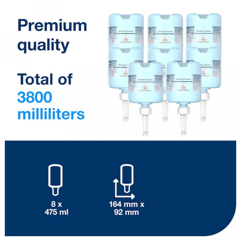 Крем-мыло Tork для душа мини жемчужного цвета с увлажняющей формулой и освежающим универсальным ароматом подходит для отелей, школ и спортивных учреждений. Бережно очищает и смягчает кожу. Подходит для использования в мини-диспенсерах для жидкого мыла Tork. Преимущества: Протестированный дерматологами состав с ингредиентами, которые бережно очищают кожу. Простая перезаправка менее чем за 10 секунд. Картридж сжимается, в результате чего объем отходов уменьшается на 70%. Герметичный картридж с одноразовой помпой помогает сократить риск перекрестного заражения. Система S2 – Жидкое мыло мини. Характеристики: - Внешний вид: перламутровый. - Объем: 475 мл. - Количество порций: 475. - Цвет: светло-голубой. С данным товаром покупают: Диспенсер TORK для мыла жидкого пластиковый, белый S2 мини (арт. 995108, 985471) Диспенсер TORK для мыла жидкого пластиковый, черный S2 мини (арт. 9005139) Условия и сроки хранения Хранить в сухом месте при температуре от 0°C до +30°C. Срок годности – 72 месяца с даты производства. Срок годности и дата изготовления указаны на упаковке.