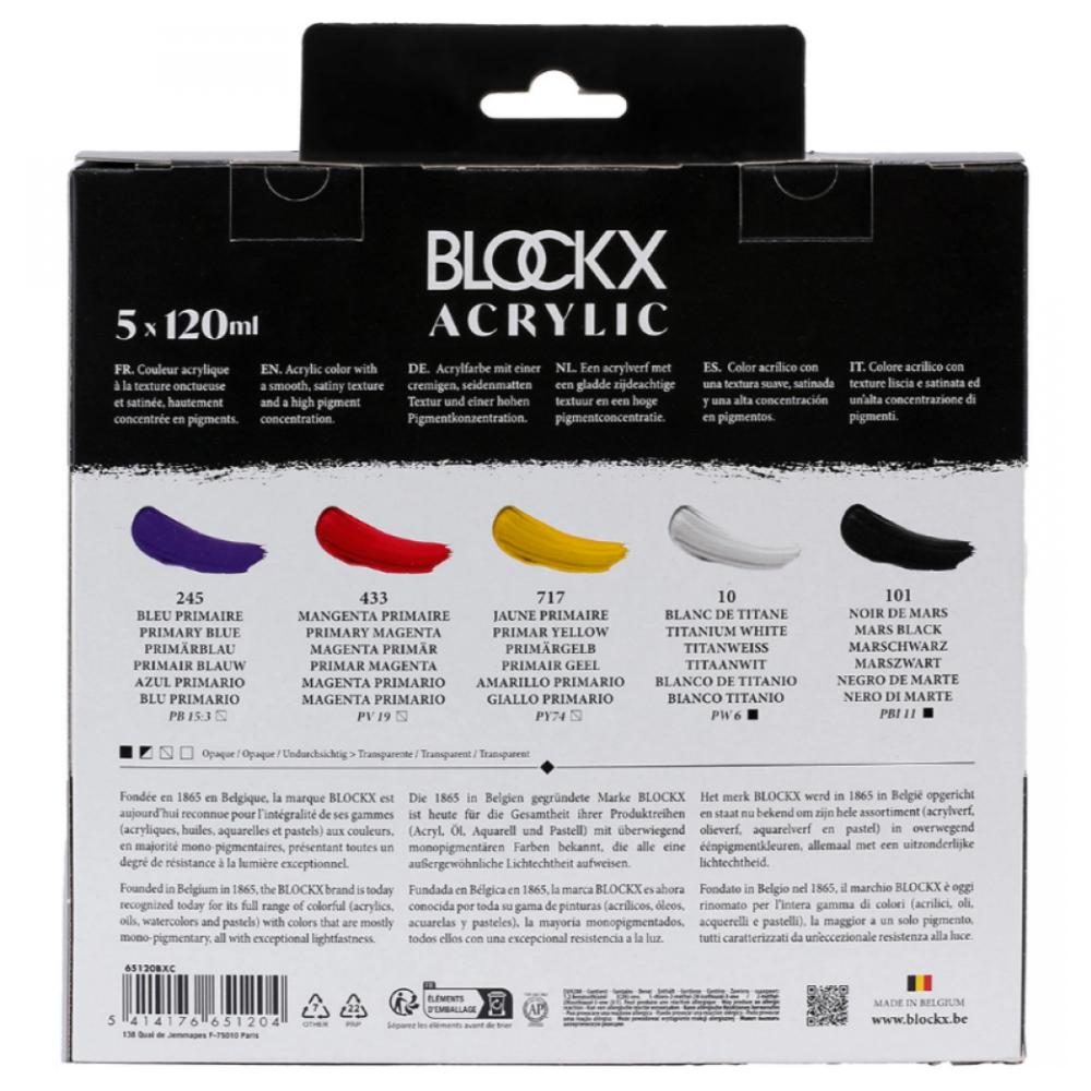 Краски акриловые "Blockx. Primaries" набор, 5 цв., 120 мл.