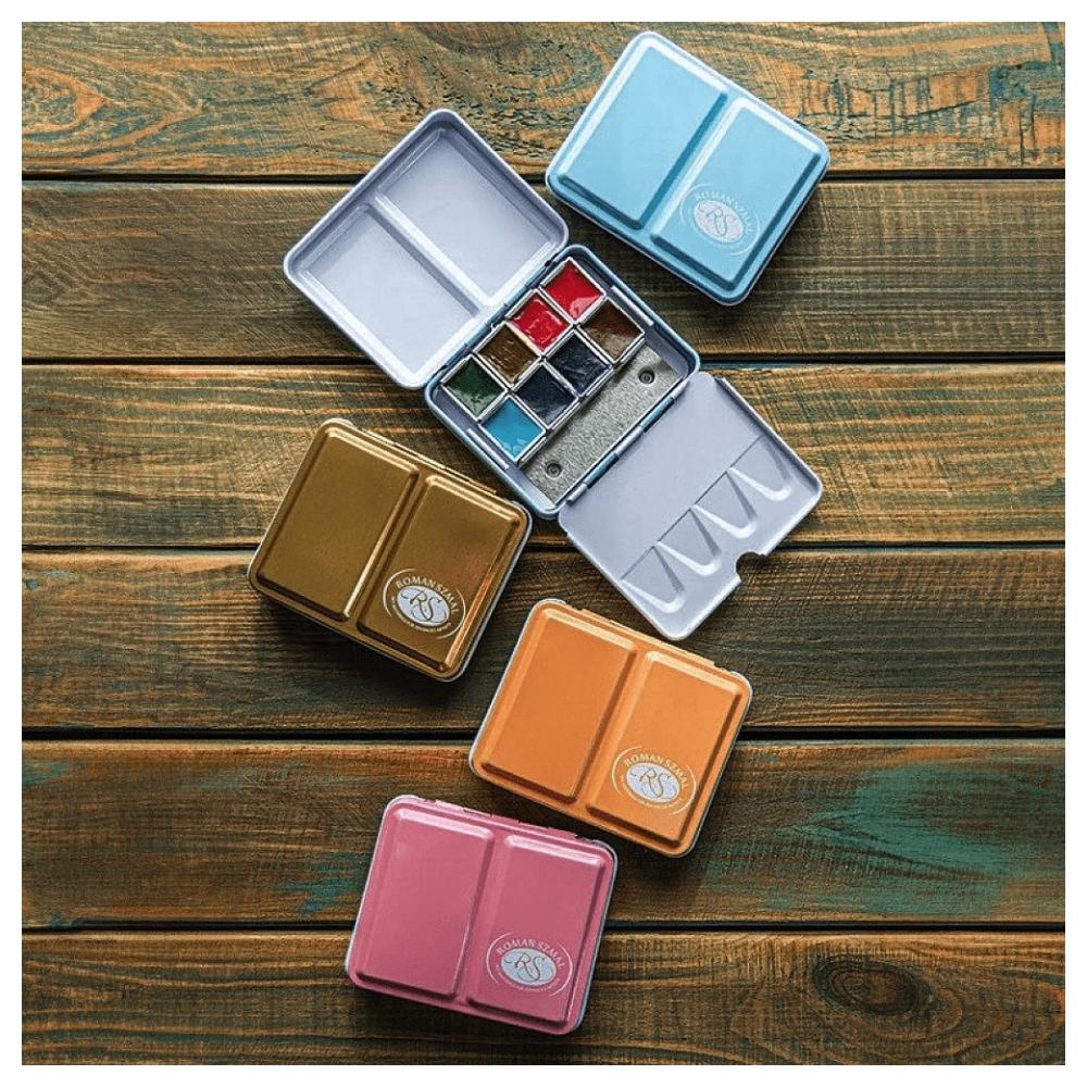Мини-набор красок Aquarius в полутонах от Романа Шмаля, идеально подходящий для зарисовок городских пейзажей. Небольшой, компактный металлический футляр содержит 8 полукювет, но вмещает до 12, что позволяет расширить палитру. Тщательно подобранные цвета отвечают потребностям художников, которые рисуют на открытом воздухе. Благодаря небольшому размеру набор помещается в кармане, что делает его чрезвычайно практичным. Поднос оснащен держателем для пальцев и поверхностями для смешивания цветов, что обеспечивает комфорт в работе. Акварельные краски Aquarius являются флагманским продуктом бренда Roman Szmal. Эти краски являются польской акварелью высочайшего качества, произведенной в Кракове. Все акварели Aquarius обладают очень высокой светостойкостью — 7-й или 8-й степени по шкале Blue Wool (шкала восьмибалльная), что означает сохранение цвета в музейных условиях в течение 100–200 лет (при правильном освещении). Этикетки на полукюветах для акварели изготовлены из акварельной бумаги, расписаны вручную оригинальными красками. На упаковке указана информация о светостойкости, грануляции, прозрачности и степени проникновения пигмента в бумагу.