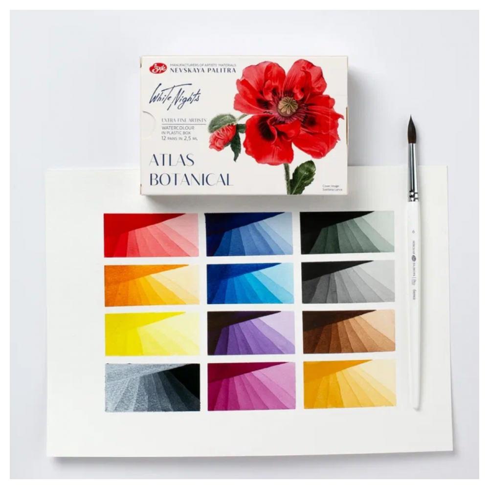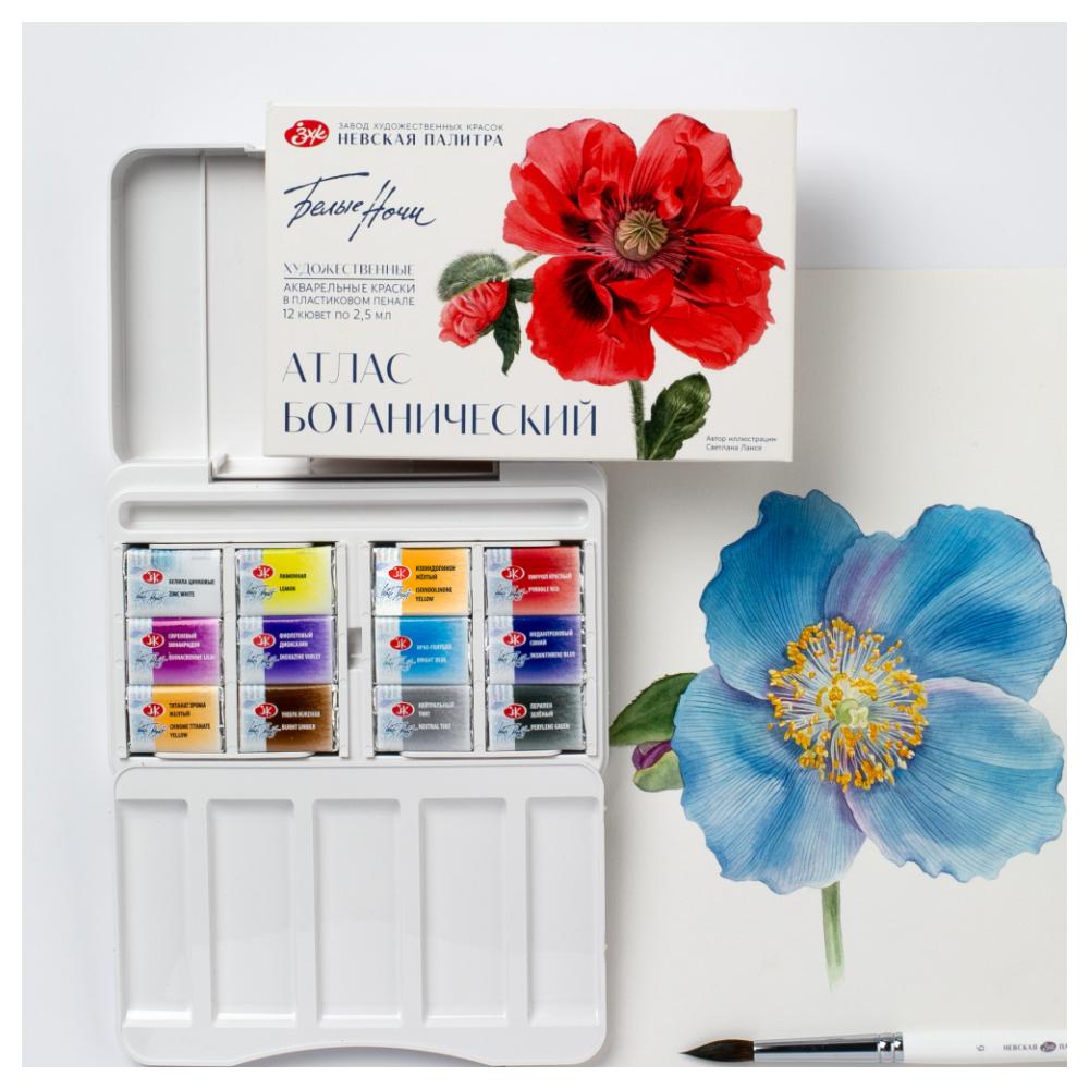Краски акварельные "Белые ночи Ботанический атлас" набор 12 цв., кюветы