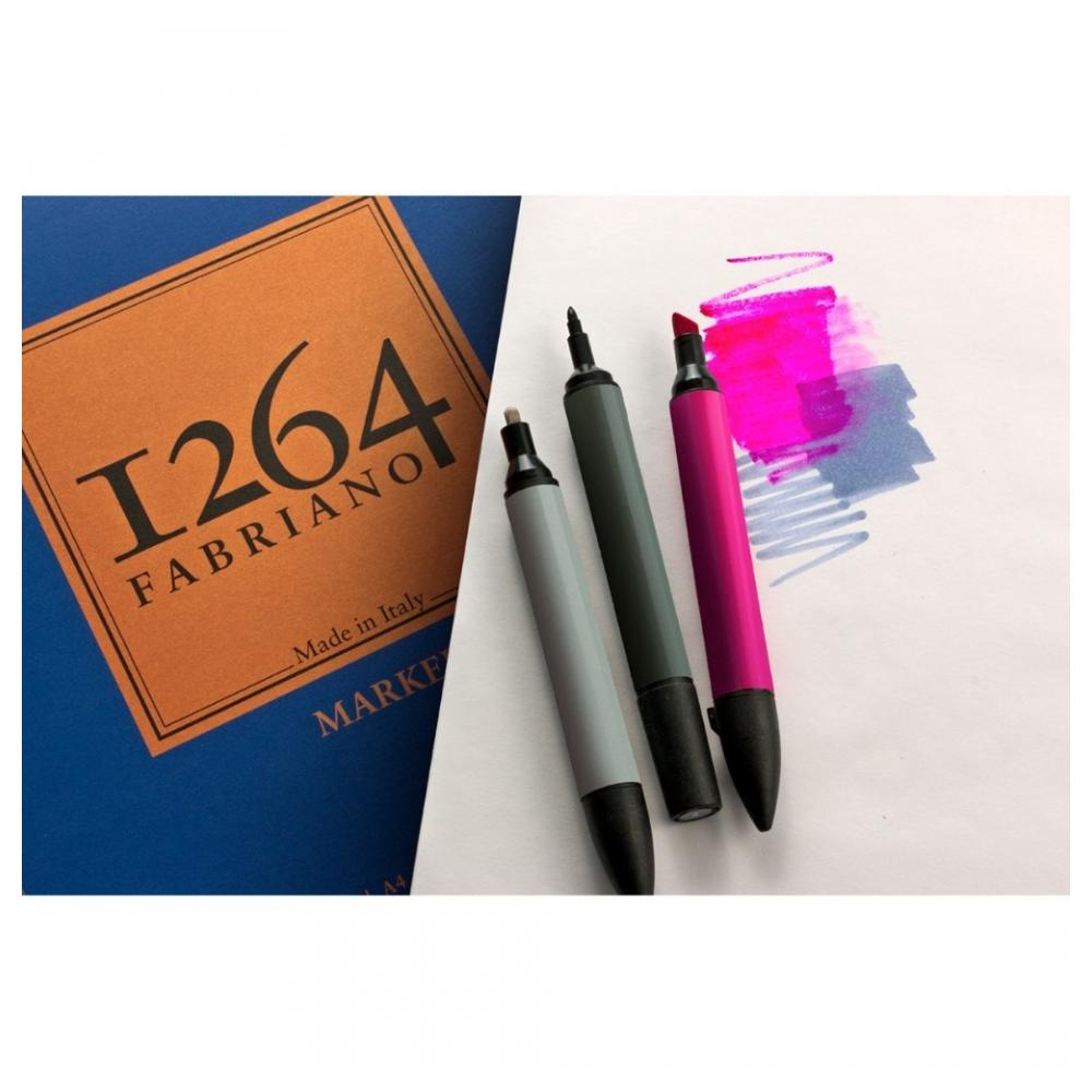 Серия Fabriano «1264» представлена альбомами для художественных работ различными видами материалов. Название серии соответствует году основания бренда. Альбом содержит высококачественную бумагу плотностью 70г/м2, ультра-белого цвета, с гладкой полупрозрачной поверхностью. Бумага позволяет раскрашивать маркерами, создавать детализированные работы и делать крупные заливки, чернила не проникают глубоко в бумагу и не растекаются. Подходит для всех типов маркеров на спиртовой и водной основе. Для художественных работ маркерами на спиртовой и водной основе.