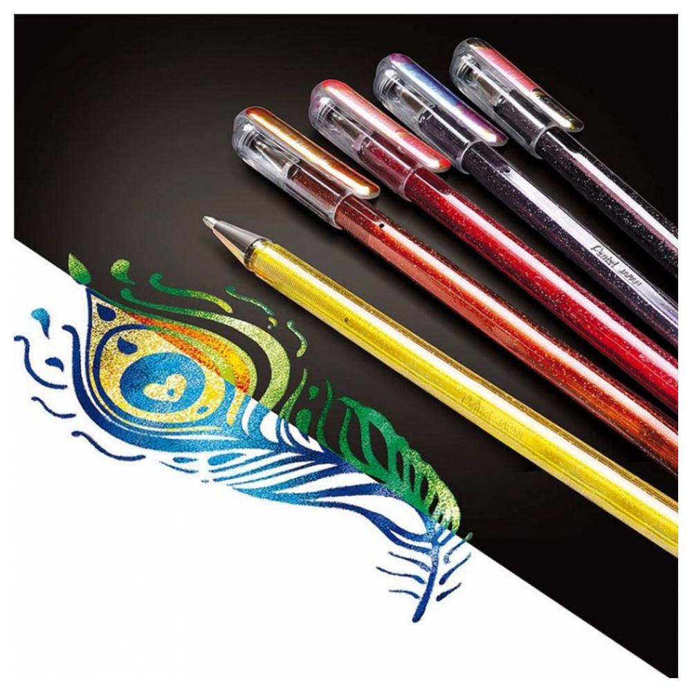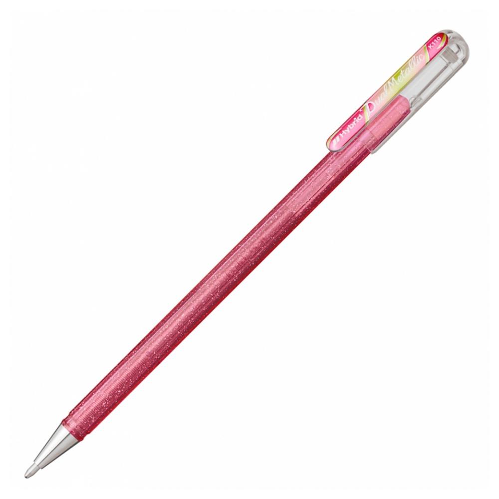 Pentel Dual Metallic K110 это уникальная гелевая ручка, заправленная пигментными чернилами с добавлением блесток и пигмента, создающего эффект хамелеона. Цвета ручек меняются в зависимости от цвета бумаги и угла обзора. Теперь ничего не может быть проще, чтобы создать удивительные мерцающие картины или открытки. Двойной металлический наконечник толщиной 1,0 мм обеспечивает равномерную подачу чернил для супер гладкого письма. Гелевые чернила, используемые для производства наших ручек, не текут, быстро сохнут на бумаге, не размазываются и устойчивы к воздействию света, а значит вы на долго сохраните свои работы в первозданном виде.