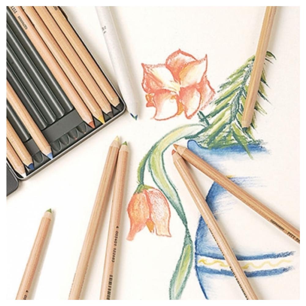 Пастельные карандаши "Pitt" от "Faber-Castell" изготовлены из светоустойчивых пигментов высочайшего качества без добавления масел. Они отлично ложатся на бумагу и легко поддаются растушевке пальцами. Возникает вопрос, как же из мягкого пастельного грифеля можно изготовить карандаш? При создании всех карандашей Faber-Castell применяется уникальная SV технология проклейки грифеля. Эта технология предотвращает грифель от поломки при затачивании, при этом в работе карандаши остаются такими же мягкими как пастель. С помощью пастельных карандашей "Pitt" вы сможете прорисовать самые тонкие детали и добиться разнообразных пастельных эффектов.