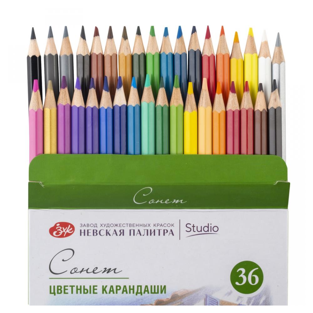 Набор цветных карандашей СОНЕТ 36 цветов, разработаны специально для дизайнеров и художников. Грифели ударопрочные, содержат насыщенные пигменты с высокой светостойкостью, обладающие интенсивностью и чистотой цвета. Мягкое нанесение, хорошее смешивание цветов.