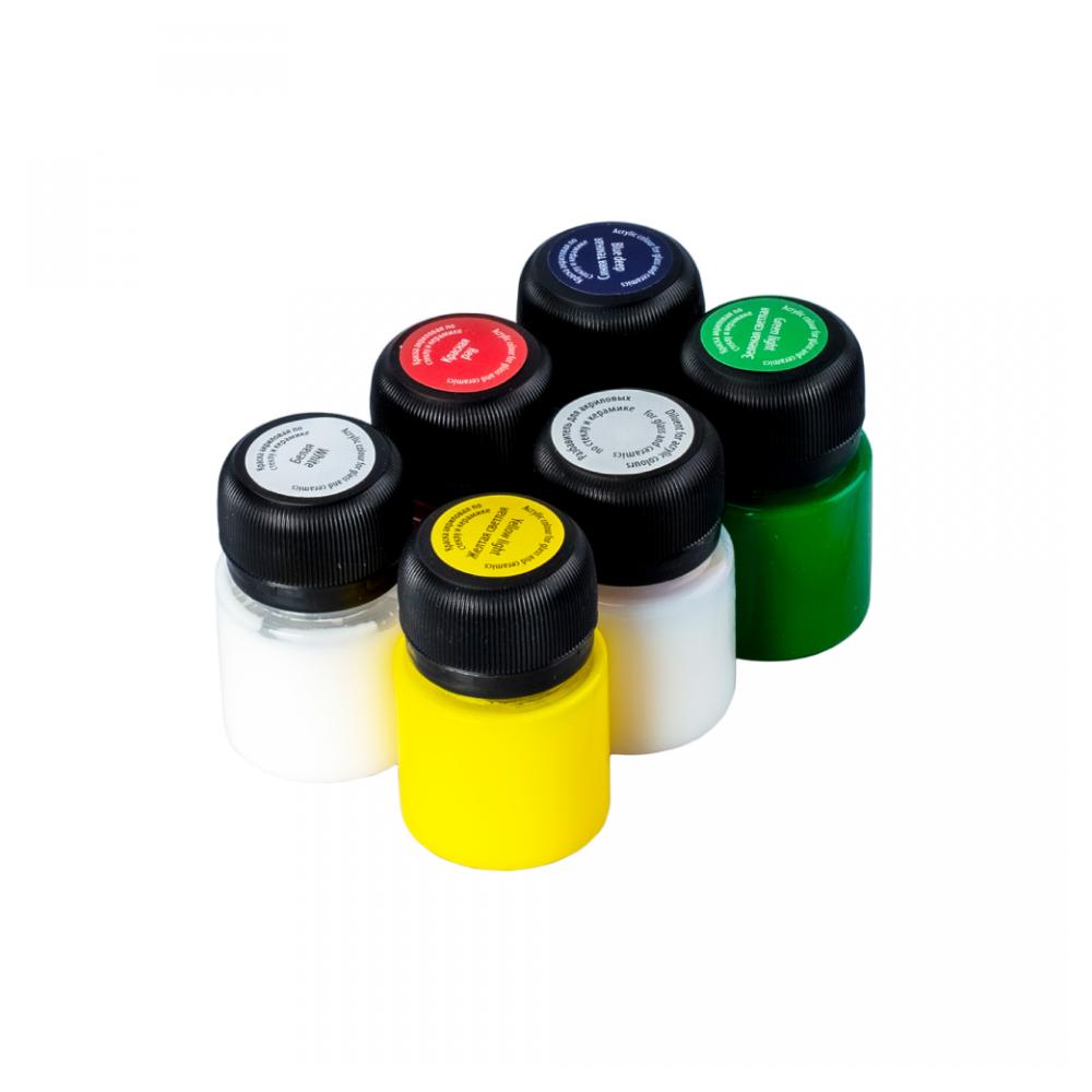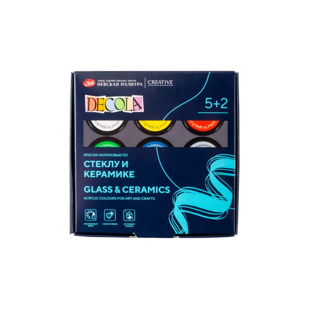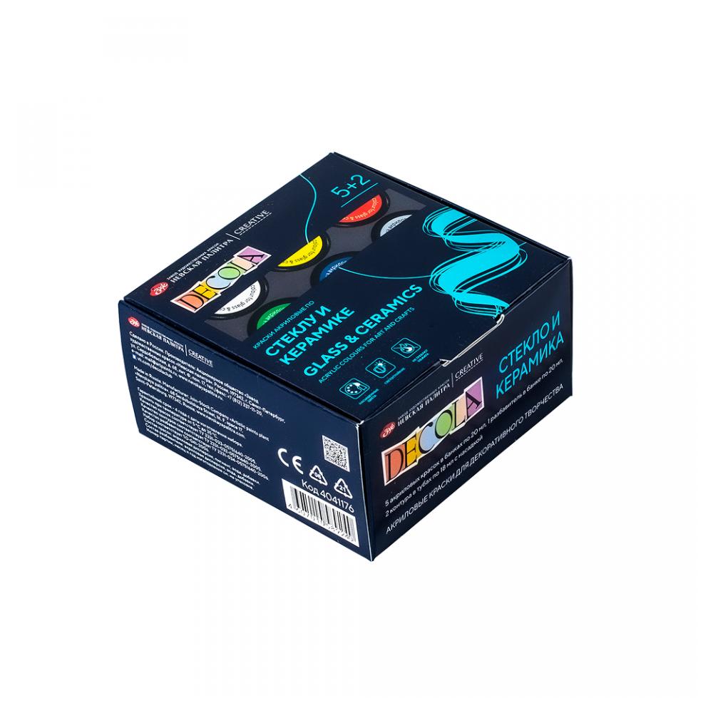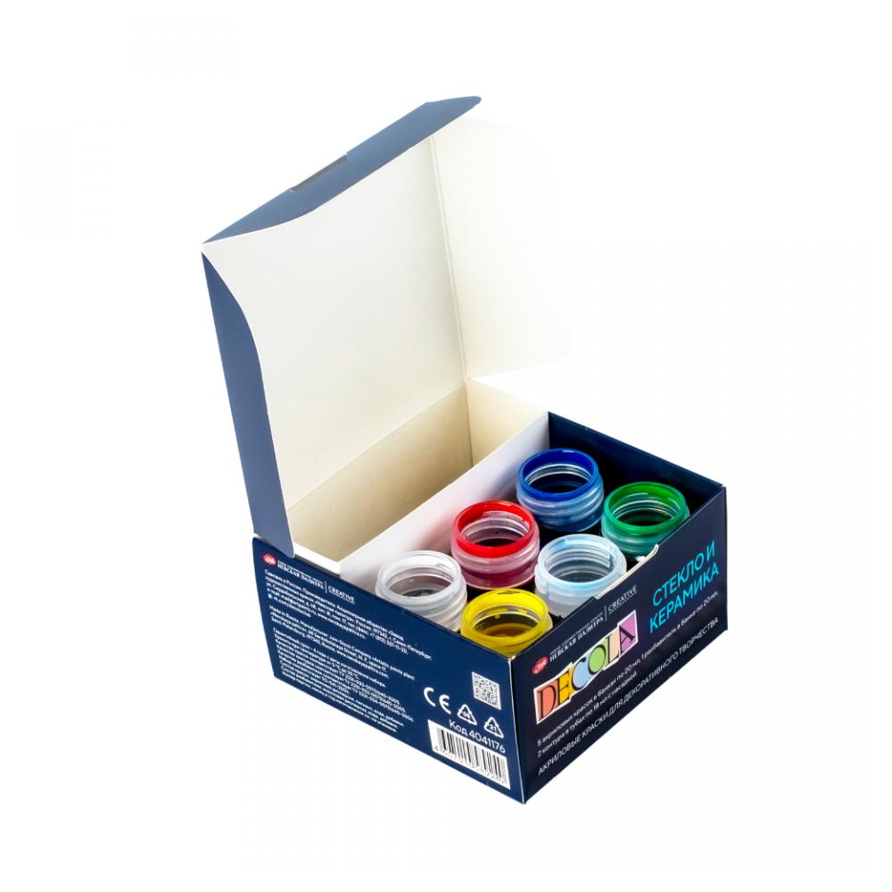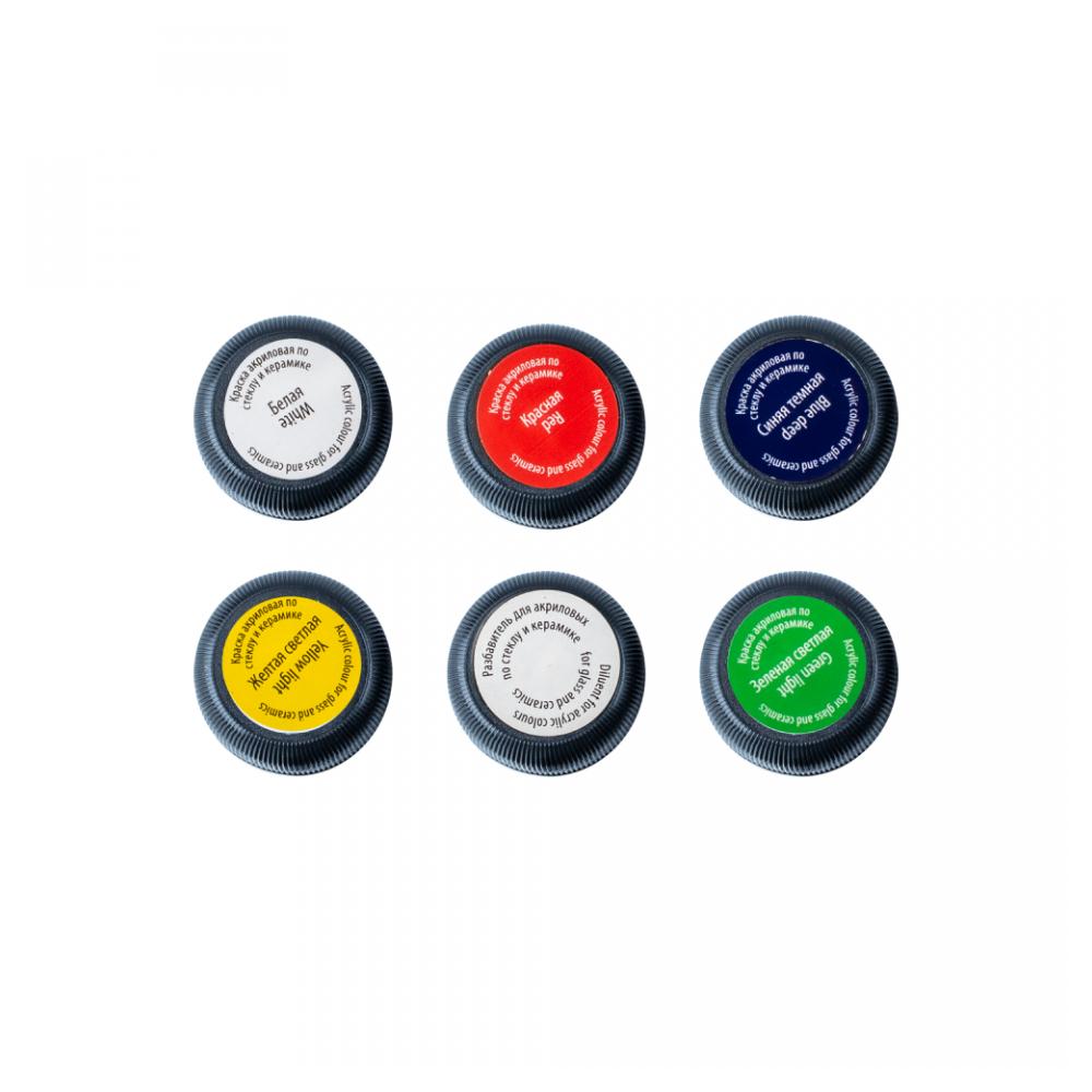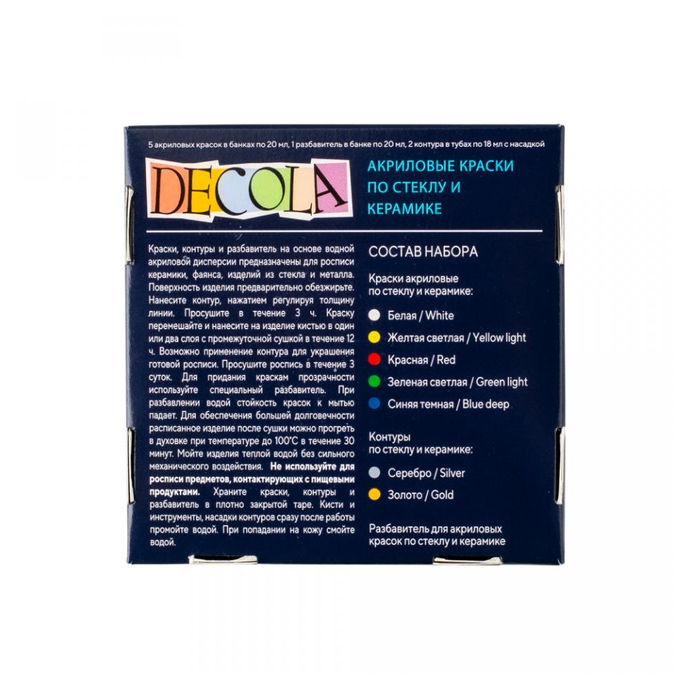 Краска акриловая по стеклу и керамике "Декола" набор 5 цв., 20 мл., банки + контур 2 шт. и разбавитель