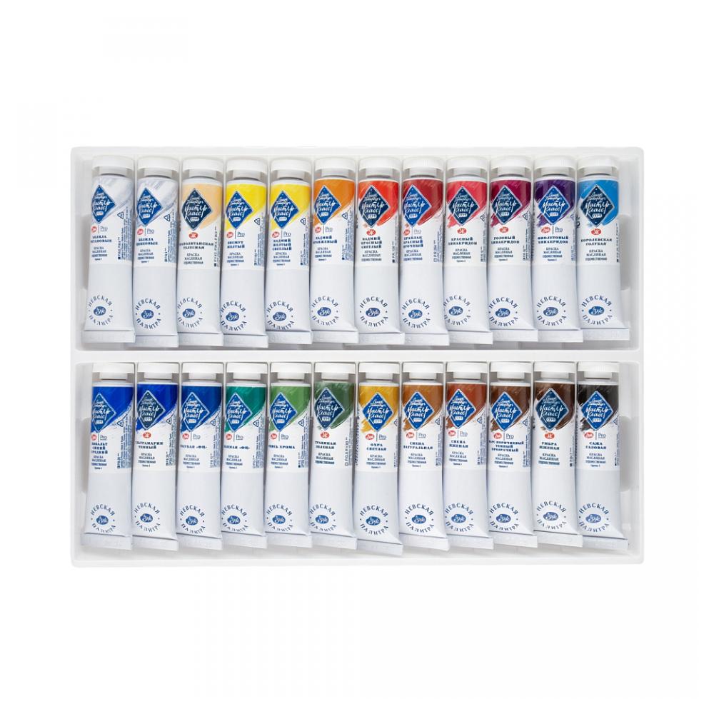 Масляные краски «Мастер-класс» разработаны для профессиональных художников. Изготавливаются по традиционным рецептурам на основе высококачественных пигментов, связующего – специально обработанного льняного масла и натуральных смол, положительным образом влияющих на свойства красок. Тонкодисперсные краски с высокой концентрацией пигмента превосходно смешиваются между собой. Обладают густой консистенцией, позволяющей работать пастозно. Яркость и чистота цвета, высокая светостойкость красок обусловлены применением ценных для живописи неорганических (природные красящие земли, кадмиевые, кобальтовые, железоокисные) и органических пигментов высокого качества. 2 вида белил в составе набора 20 оттенков из 24-х - монопигментные; натуральные кадмии и кобальт в составе набора; 18 оттенков из 24-х обладают максимальной светостойкостью. Состав набора: 101 Белила титановые | 100 Белила цинковые | 222 Неаполитанская телесная | 272 Висмут желтый | 200 Кадмий желтый светлый | 304 Кадмий оранжевый | 302 Кадмий красный светлый | 339 Краплак красный прочный | 361 Красный хинакридон | 324 Розовый хинакридон | 621 Фиолетовый хинакридон | 528 Королевская голубая | 505 Кобальт синий средний | 521 Ультрамарин темный | 500 Голубая «ФЦ» | 703 Зеленая «ФЦ» | 704 Окись хрома | 716 Травяная зеленая | 206 Охра светлая | 405 Сиена натуральная | 406 Сиена жженая | 404 Марс коричневый темный прозрачный | 408 Умбра жженая | 801 Сажа газовая