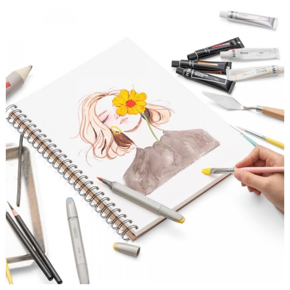 Скетчбук для графики "Himi" — это надёжный инструмент для творческих идей и профессиональных работ. Формат 22.8×30.4 см и плотность бумаги 180 г/м² обеспечивают удобство в использовании и позволяют работать с различными материалами. Мелкозернистая текстура идеально подходит для графики, сохраняя чёткость линий и глубину оттенков. Бумага без кислоты гарантирует долговечность рисунков, предотвращая пожелтение и старение листов. Отличная стираемость делает скетчбук практичным для эскизов и доработок, а многоцелевое назначение позволяет использовать его как для карандашных набросков, так и для работы с красками, без риска скручивания поверхности. В 40 листах заключено пространство для вдохновения и реализации самых смелых художественных замыслов.