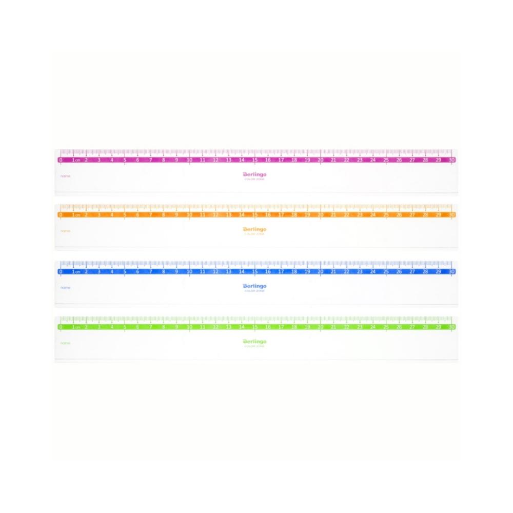 Линейка пластиковая школьная Berlingo Color 30 см, имеет безопасные закруглённые края и специальное место для указания имени. Высококачественная градуировка нанесена с использованием УФ чернил для наилучшей устойчивости. Эргономичный дизайн позволяет избежать смазанных линий при черчении. Цвет изделия - прозрачный. Линейка имеет инивидуальный штрих-код и упакована в пакет с европодвесом. • Длина: 30 см; • Материал: пластик; • Цвет: прозрачный.