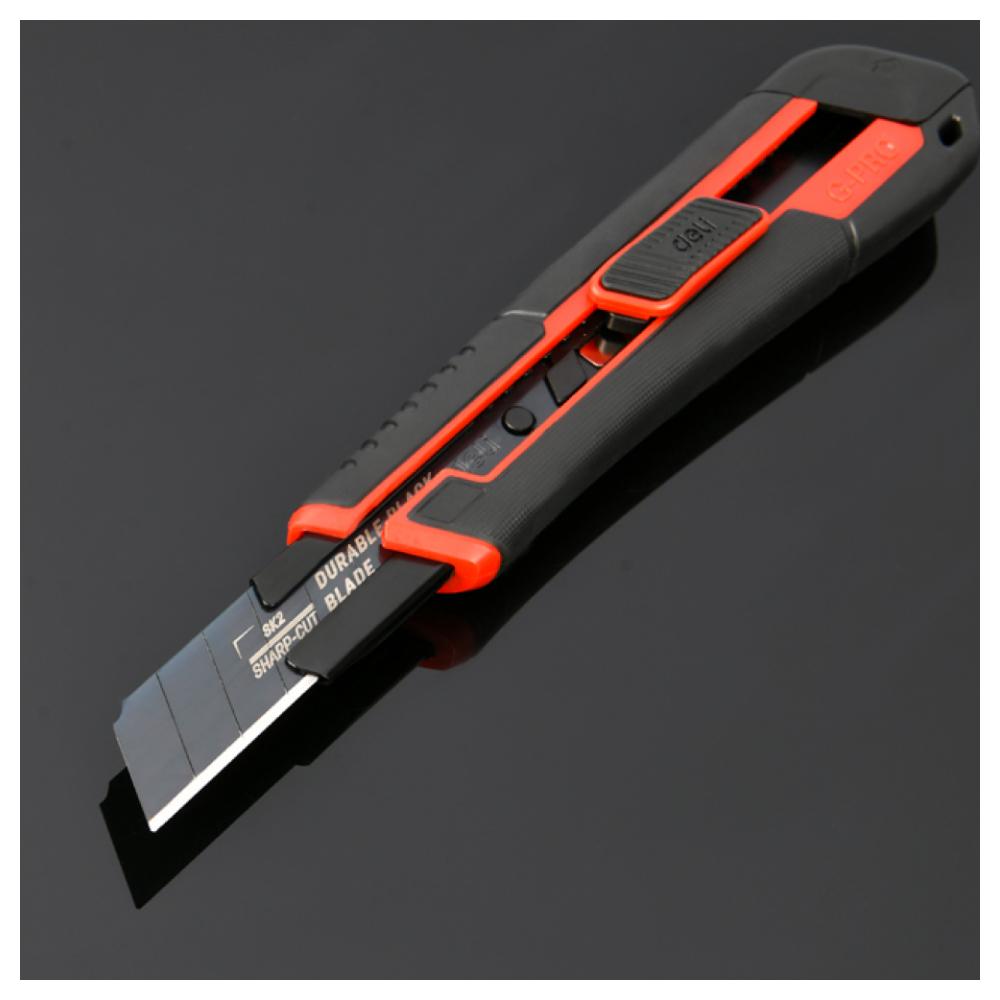 Профессиональный технический нож Deli DL018G – надежный инструмент для выполнения точных и аккуратных работ. Этот нож станет незаменимым помощником в строительстве, ремонте, упаковке и других задачах, где требуется качественный рез. Лезвие из высококачественной стали SK2 обеспечивает долговечность, остроту и устойчивость к износу. Ширина лезвия 18 мм, длина 100 мм - оптимальный размер для выполнения широкого спектра задач. 8 сегментов: возможность быстро и безопасно менять лезвие по мере необходимости. Прорезиненный ударопрочный корпус обеспечивает удобный хват, предотвращает скольжение и повышает безопасность при работе. Нет необходимости вручную регулировать или фиксировать лезвие – блокировка происходит автоматически Отверстие для ремешка или подвесного хранения для удобства переноски и хранения инструмента. Металлическая направляющая обеспечивает точность и контроль при резке. Преимущества: Профессиональное качество для сложных задач Эргономичный дизайн для комфортной работы Долговечность и надежность в любых условиях эксплуатации Технические характеристики: Толщина лезвия - 0.8 мм Материал лезвия - SK2 Выдвижное лезвие - есть Обрезиненная рукоять - да Конструкция - выдвижной Складной - нет Количество сменных лезвий в комплекте - нет Металлические направляющие - да С возвратной пружиной - нет Отделение для запасных лезвий - нет Фиксатор лезвий - защелка Идеально подходит для профессионалов и любителей, которые ценят качество и удобство в работе.