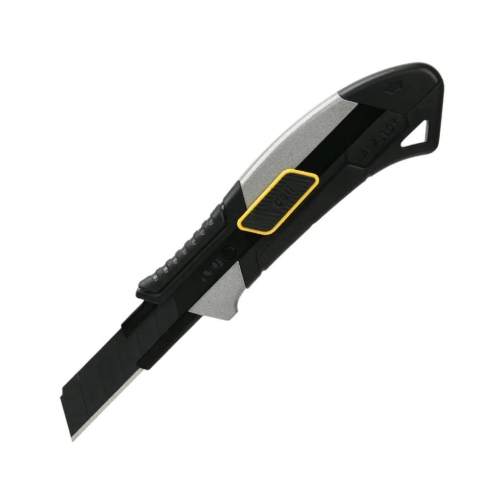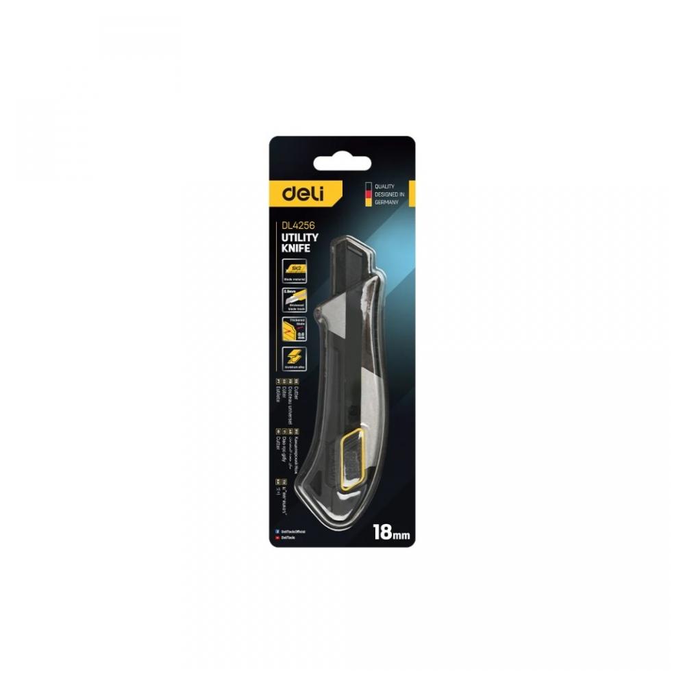 Технический/строительный нож Deli DL4256 это превосходный выбор для различных задач. Легко справляется с бумагой, картоном, линолеумом, некоторыми видами пластика и др. Корпус ножа изготовлен из высококачественного алюминиевого сплава, что обеспечивает прочность и долговечность инструмента. Острое черное сегментированное лезвие из стали SK2 режет точно и легко, его черный цвет подчеркивает его эстетичный внешний вид. У ножа прорезинены рукоять снизу и сверху для удобного хвата и и надежного сцепления, и даже кнопка подачи лезвия прорезинена! Одной из особенностей технического ножа Deli DL4256 является автоблокировка лезвия - достаточно просто выдвинуть лезвие на нужную длину и можно работать. Ширина лезвия: 18 мм Длина лезвия: 110 мм Толщина лезвия: 0.8 мм Материал рукояти: алюминий, пластик, резина Материал лезвия: SK2 Цвет корпуса: серый/черный Выдвижное лезвие: есть Обрезиненная рукоять: да Конструкция: выдвижной Складной: нет Количество сменных лезвий в комплекте: нет Количество в упаковке: 1 шт Габариты без упаковки: 160 мм Форма лезвия: сегментированное Общая длина: 160 мм Отделение для запасных лезвий: нет Фиксатор лезвий: защелка Вес нетто: 0.082 кг Преимущества Корпус из алюминиевого сплава Черное сегментированное лезвие Лезвие из стали SK2 Прорезиненный корпус Отверстие для шнурка