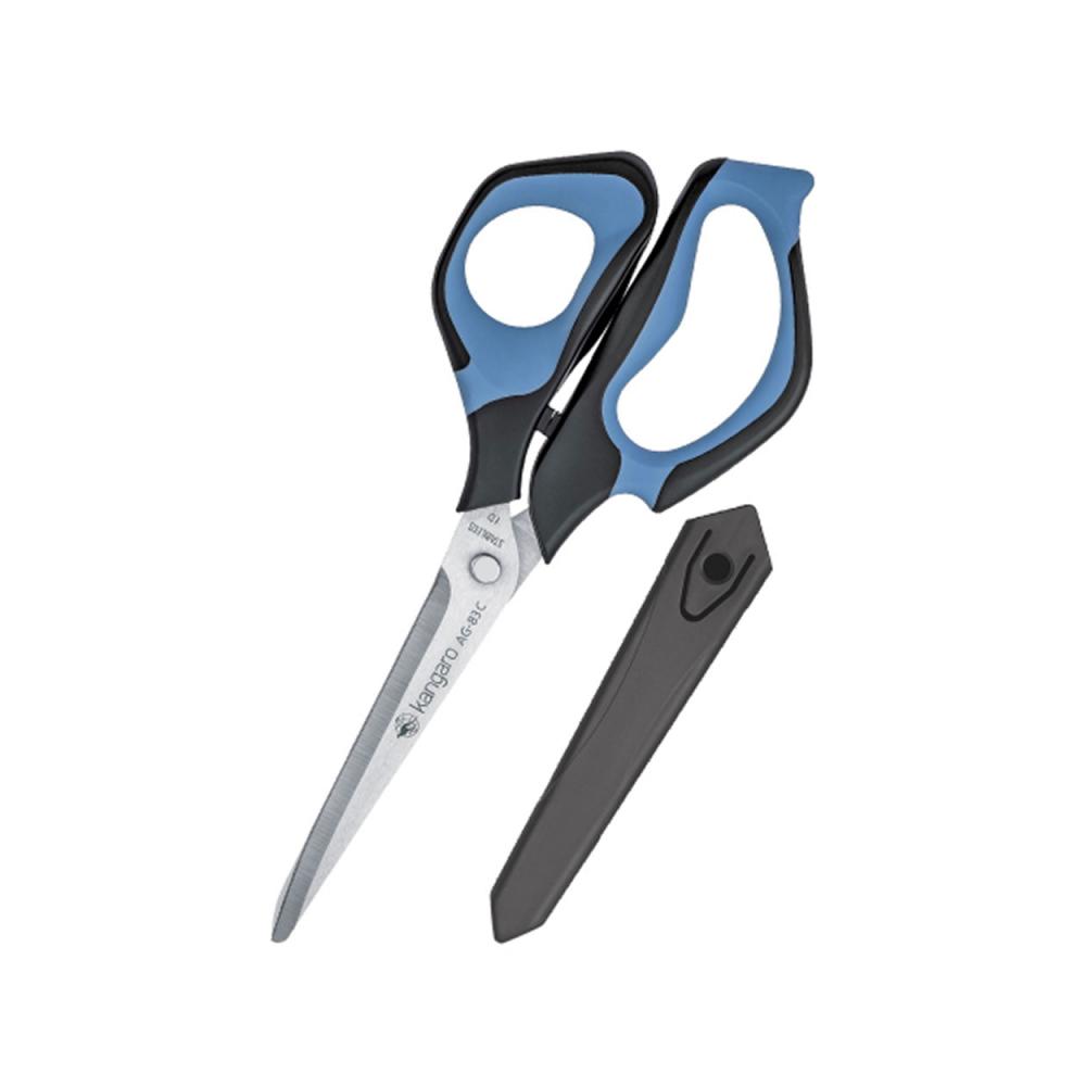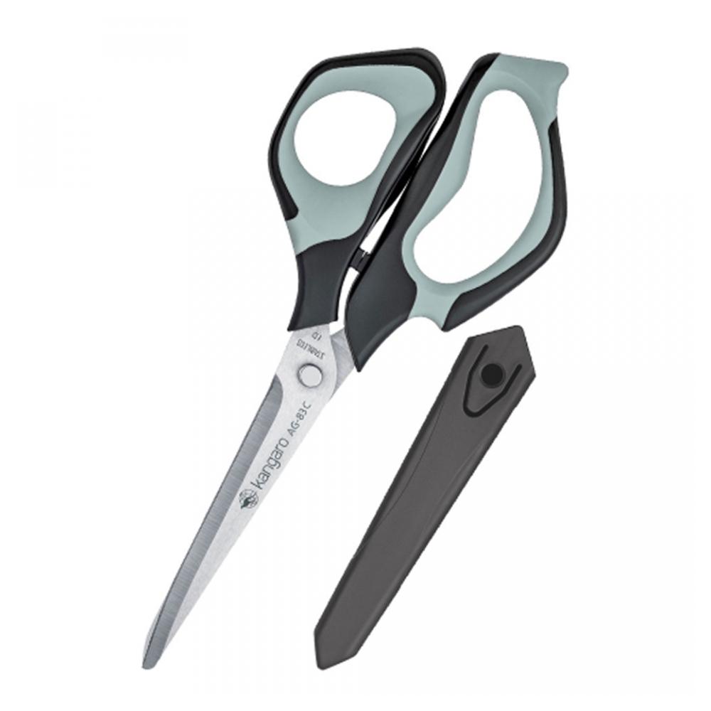 Ножницы 21,1 см "AG-83C/Y" от бренда Kangaro выполнены из прочной стали. Конструктивные особенности ножниц обеспечивают низкий коэффициент трения и легкость использования. Широкие лезвия с заостренным наконечником. На одном из лезвий микронасечки для большей точности резки. Мягкая эргономичная рукоятка из гипоаллергенного полипропилена подходит для правшей. Стильный внешний вид.