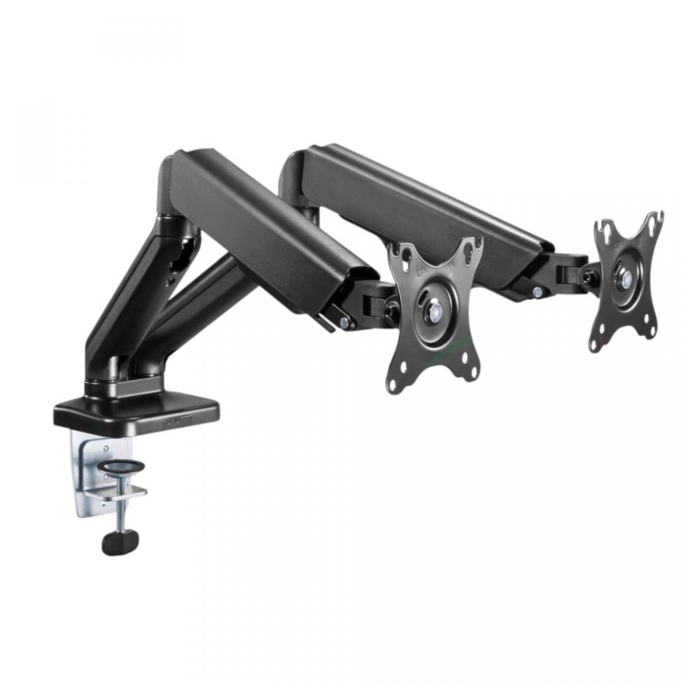 Новинка - кронштейн Power Black DBL в конструкции основания: 1xUSB 2.0 Port, MIC Port, Headphone Port. Держатель Power Black DBL сделан на основе нашего популярного кронштейна для монитора Power Black. Крепление для 2-х мониторов Power Black DBL эргономично организует ваше рабочее место. Кронштейн подойдет для мониторов с диагональю 17-32" и максимальным весом в 9 кг. Регулировка жесткости механической пружины и большой диапазон регулировок помогут настроить оптимальное положение мониторов для работы и отдыха. Встроенные кабель-каналы для проводов, установленные в каждом из креплений, исключат беспорядок на столе. Рекомендуем обратить внимание на альтернативную модель: кронштейн для 2-х мониторов Twin II. Технические характеристики: Вид крепления к столешнице: струбцина; вкручивающийся элемент в любое место на столе Крепёжные отверстия к монитору: съёмное (VESA) 75х75, 100х100 Габаритные размеры: 938x112x590 мм Вращение экрана: -180°/+180° Наклон экрана: -45°/+70° Поворот экрана: -90°/+90° Количество экранов: 2 Диагональ экрана (дюймы): 17-32" Нагрузка (вес монитора): 18 кг (до 9 кг на каждое крепление) USB Port (модель Power Black DBL U): 1xUSB 2.0 Port Multi-Media Port (модель Power Black DBL U): MIC Port, Headphone Port Наличие кабель-каналов: да Совместим: Адаптер-крепление для ноутбука, адаптер для крепления iMac Гарантия: 1 год