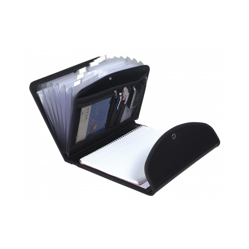 Папка-портфолио Exactive - это эргономичная и продуманная до мелочей папка, которая вместит все необоходимое для работы, презентаций или деловой поездки. Внутренние карманы папки закрываются на молнию, а сама папка на кнопку - тем самым сохранив в надежности ваши записи и документы. В папке имеются 6 отделений формата А4 и блокнот с разделителями, отделения для пишущих инструментов. Папка-портфолио Exactive выполнена из гибкого, экологически чистого и на 80% переработанного полипропилена