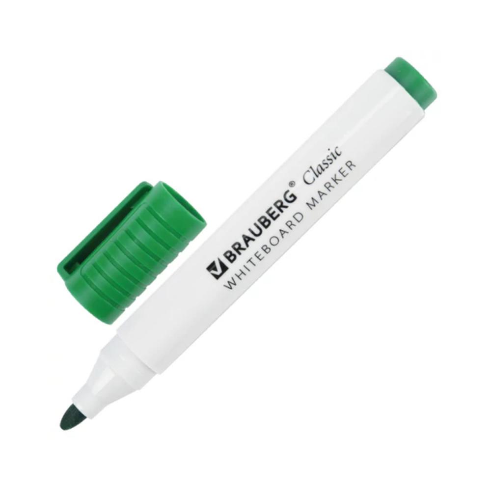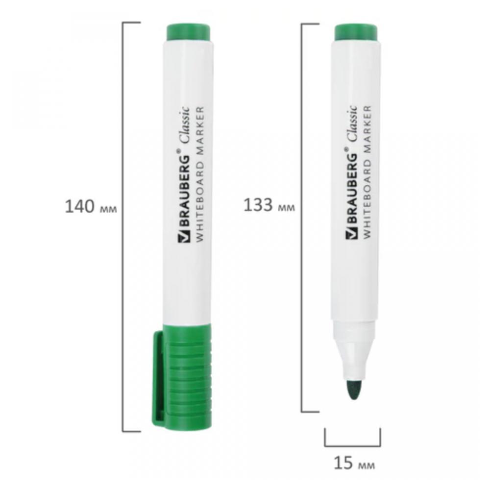 Высококачественный маркер BRAUBERG "CLASSIC" для белой доски. Предназначен для письма на досках с магнитно-маркерной поверхностью. Маркер для доски зеленого цвета обладает круглым пластиковым корпусом диаметром 15 мм. Наконечник круглой формы обеспечивает толщину линии письма 3 мм, что позволяет писать крупным шрифтом, который будет хорошо виден. Основа чернил - спиртовая. Чернила быстро высыхают и не оставляют разводов, легко стираются сухой губкой. Изделие не перезаправляется. Цвет колпачка с клипом соответствует цвету чернил. Маркеры для доски BRAUBERG "CLASSIC" идеально подходят для рисования, игр, визуализации учебных процессов, учебы, совещаний, проведения планерок. Спешите приобрести маркеры для доски BRAUBERG по выгодной цене и в отличном качестве.
