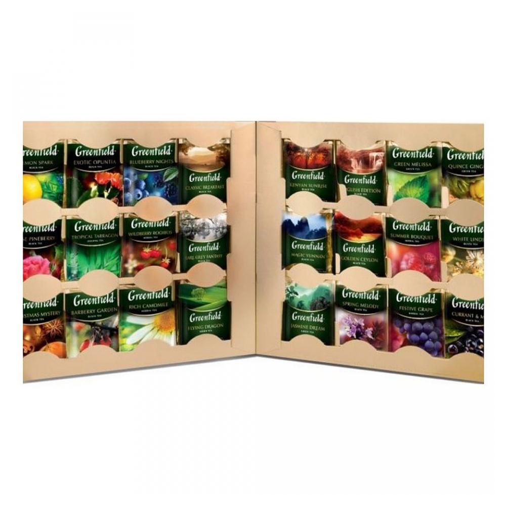 Коллекция листового чая "Greenfield" в пакетиках, 24 эксклюзивных вкусов – ярких и нежных, интригующих и насыщенных. Уникальная возможность оценить все разнообразие "Greenfield" вместе с семьей или за чтением книги. Прекрасный вариант подарка. Специально для тех, кто ценит изысканный вкус и превосходный аромат чая создан этот уникальный набор " Коллекция превосходного листового чая и чайного напитка Гринфилд в пакетиках для разовой заварки" 96 штук (24 вида по 4 шт.) В подарочный набор входят: "Голден Цейлон" – черный байховый цейлонский чай. "Инглиш Эдишн" – черный байховый цейлонский чай. "Классик Брекфаст" – черный байховый чай. "Меджик Юньнань" – черный байховый китайский чай. "Кениан Санрайз" – черный байховый кенийский чай. "Эрл Грей Фэнтази" – черный цейлонский плантационный чай с ароматом бергамота. "Флаинг Драгон" – зеленый китайский плантационный чай из Хунани. "Жасмин Дрим" – зеленый байховый, ароматизированный жасмином. "Вайлдберри Ройбош" – чайный напиток ароматизированный с кусочками ягод земляники клюквы. "Рич Камомайл" – чайный напиток со вкусом и ароматом яблока с корицей. "Самма Букет" – чайный напиток со вкусом и ароматом малины. "Фестив Грейп" – чайный напиток со вкусом и ароматом винограда. "Грин Мелисса" – зеленый байховый с листьями мелиссы и мяты и ароматом лимона. "Квинс Джинджер" – зеленый байховый с ароматом японской айвы, имбирем и растительными компонентами. "Тропикал Таррагон" – оолонг с добавлением чая зеленого(матча), яблоком, ананасом и ароматом тархуна. "Блюберри Найтс" – черный байховый с ароматом черники и ежевики и растительными компонентами. "Крисмас Мистери" – черный байховый с ароматом апельсина и лимона и растительными компонентам. "Спринг Мелоди" – черный байховый с ароматом фруктов и душистых трав и растительными компонентам. "Барбери Гарден" – черный байховый с ароматом барбариса и растительными компонентам. "Лемон Спарк" – черный байховый с ароматом лимона и растительными компонентам. "Экзотик Опунция" – черный байховый с ароматом опунции, базиликом и растительными компонентам. "Роуз Пайнберри" – черный с ароматом белой клубники и розы и растительными компонентам. "Вайт Линден" – черный с добавлением зеленого чая, с ароматом османтуса и растительными компонентам. "Капэнт Энд Минт" – черный байховый с ароматом смородины и растительными компонентам. Состав: Голден Цейлон, Премиум Ассам, Классик Брекфаст, Файн Дарджилинг, Меджик Юньнань, Деликат Кимынь, Кениан Санрайз, Эрл Грей Фэнтази, Милки Оолонг, Флаинг Драгон, Джапаниз Сенча, Жасмин Дрим, Крими Ройбош, Рич Камомайл, Матэ Агуантэ, Самма Букет, Джинджер Рэд, Фестив Грэйп, Филд Лотос Бриз, Грин Мелисса, Тропикал Мавел, Манго Делайт, Блюберри Найтс, Кристмас Мистери, Истэ Чиэ, Спринг Мелоди, Барбери Гарден, Лемон Спарк, Ванила Вэйв, Шоколад Тоффи. Условия и сроки хранения: Хранить в чистом, хорошо вентилируемом помещении без посторонних запахов с относительной влажностью воздуха не выше 70%. Дата изготовления указана на упаковке. Срок годности — 2 года.