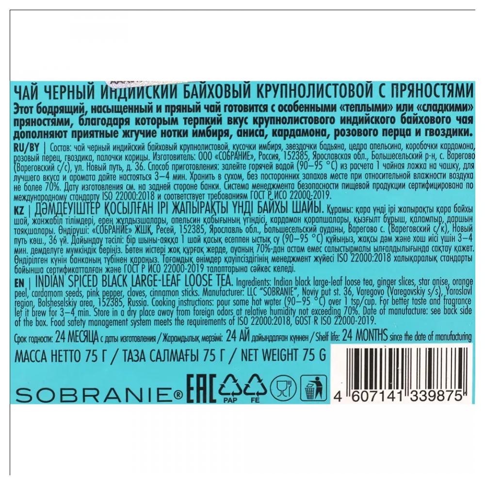 Чай LANCASTER в изящной жестяной банке — это гармония традиций и утончённого вкуса. Индийский чёрный чай, насыщенный и крепкий, дополнен пряной палитрой специй, которая раскрывается в каждой чашке теплом и ароматом Востока. Лёгкие нотки корицы, кардамона и гвоздики создают богатый букет, дарящий бодрость и уют, а стильная упаковка весом 75 г делает его не только источником наслаждения, но и прекрасным подарком для ценителей настоящего чая. Состав: Чай черный индийский крупнолистовой, кусочки имбиря, звездочки бадьяна, цедра апельсина, коробочки кардамона, розовый перец, гвоздика, палочки корицы. Условия и сроки хранения: Хранить при температуре (18±3) °C и относительной влажности воздуха не более 70%. Не подвергать воздействию прямого солнечного света. Срок годности и дата изготовления указаны на упаковке.