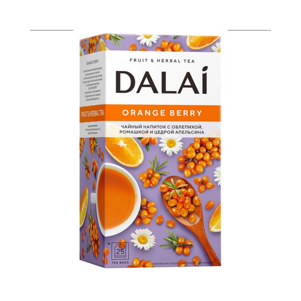 Чайный напиток "Dalai Orange Berry" — это яркое сочетание солнечного апельсина и сочных лесных ягод, заключённое в удобные пакетики по 1,2 г. Его аромат наполняет пространство свежестью и лёгкой сладостью, а вкус дарит бодрость и гармонию, превращая каждую чашку в маленький праздник. Упаковка из 25 пакетиков позволяет наслаждаться этим фруктово-ягодным букетом каждый день, создавая атмосферу тепла и уюта. Состав: ромашка, яблоко, облепиха, цедра апельсина, краситель натуральный бета-каротин, ароматизаторы "облепиха" и "апельсин". Условия и сроки хранения: Хранить при относительной влажности не более 70 %, в чистом, хорошо вентилируемом, без посторонних запахов местах. Условия хранения и срок годности указаны на упаковке. Срок годности — 2 года.