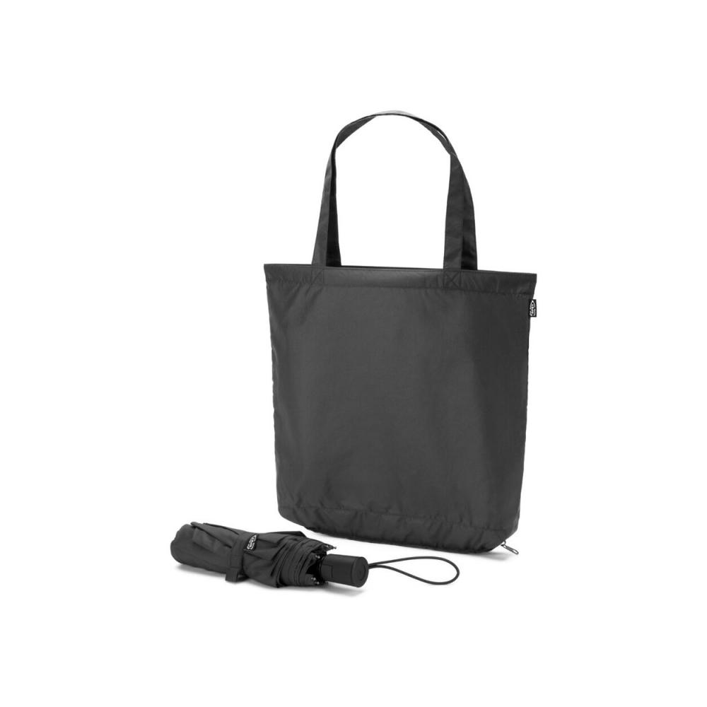 Набор «Skylar» от hi!dea - ваше практичное решение для комфортных прогулок и удобного шопинга в любую погоду. В набор входит: Складной зонт с полуавтоматическим механизмом - размер 53 см, изготовлен из высококачественного водонепроницаемого материала, надежно защищающего от дождя. Лёгкий алюминиевый каркас обеспечивает прочность и устойчивость конструкции даже при ветре, а эргономичная пластиковая ручка дарит удобство и комфорт при использовании. Складной формат позволяет компактно сложить зонт, легко помещая его в сумку или рюкзак. Сумка для покупок из прочного полиэстера - оснащена водоотталкивающей пропиткой, которая защитит ваши вещи от лёгкого дождя. Сумка оборудована удобными внутренними карманами для мелочей и регулируемыми ремнями, что делает её лёгкой в переноске и практичной в использовании. Размеры сумки: 420 x 390 мм