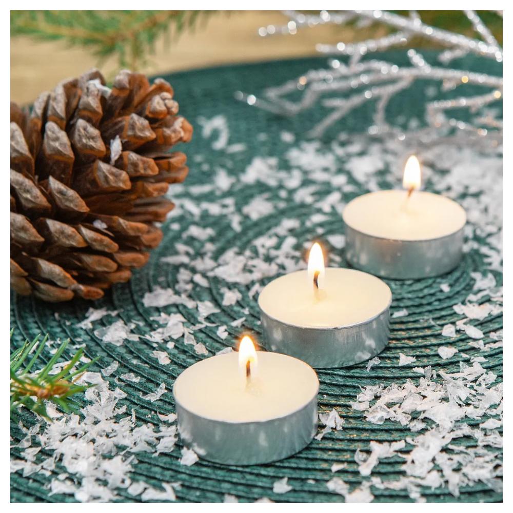 Чайные свечи в гильзе – лаконичное и классическое решение для украшения интерьера. Свечи таблетки создадут особо настроение во время праздничного ужина, создавая уютный полумрак. Чайные свечи стандартного диаметра подойдут для аромалампы или для подогрева чайника. Хлопковый фитиль обеспечивает ровное горение без треска и копоти. Количество в наборе: 100 шт. Размер свечи: 3.8×3.8×1.4 см. Время горения: 4 часа. Вес 1 шт: 12 г. Состав: парафин, хлопковый фитиль, алюминиевая гильза. Условия хранения: Хранить при температуре не выше +30°С в помещениях, защищенных от воздействия прямых солнечных лучей. Срок годности не ограничен при соблюдении условий хранения.