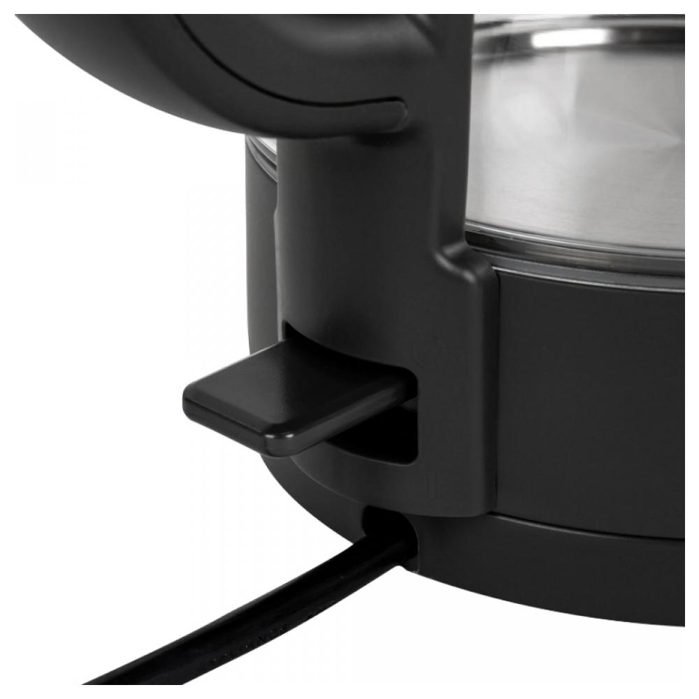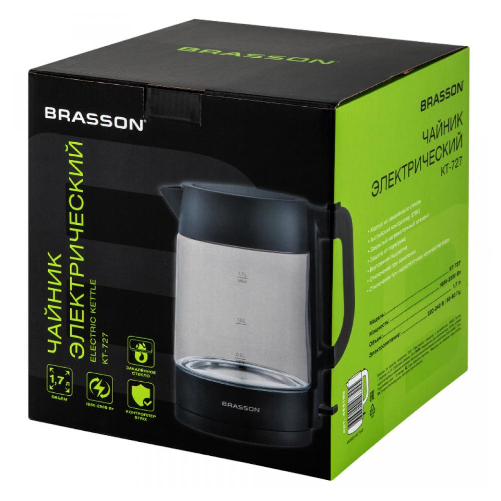 Электрический чайник BRASSON KT-727 превратит рутинное кипячение воды в приятный и безопасный процесс. Современный дизайн и отличная функциональность делают его незаменимым помощником на каждой кухне. Мощность прибора составляет 2200 Вт, что позволит воде закипеть за считаные минуты. На ручке чайника находится кнопка открывания, что делает удобнее его эксплуатацию. Корпус изготовлен из термостойкого стекла. Скрытый нагревательный элемент увеличит срок службы. Индикатор уровня воды позволит с легкостью определить количество воды в чайнике. LED-подсветка проинформирует о том, что он включен, и процесс нагрева воды запущен. Шнур, при необходимости, можно спрятать в специальный отсек, расположенный в подставке. Контактная группа STRIX обеспечивает защиту от перегрева. Устройство работает стабильно благодаря контроллеру, рассчитанному на длительный срок службы. Чайник автоматически отключается при закипании, имеет защиту от перегрева и включения без воды. В носике расположен съёмный фильтр от накипи, который легко извлечь и очистить. Не откладывайте комфорт на потом – превратите каждое утро в удовольствие с электрическим чайником BRASSON KT-727! Характеристики: Вид нагревательного элемента: закрытый Автоотключение при закипании: да Серия: KT Отключение при отсутствии воды: да Индикация уровня воды: да Вращение на 360°: да Подсветка: да Фильтр от накипи: да Длина шнура: 0.75 м Цвет корпуса: графитовый Ширина: 142 мм Высота: 221 мм Глубина: 209 мм Вес (без упаковки): 0.93 кг Гарантия - 12 месяцев.