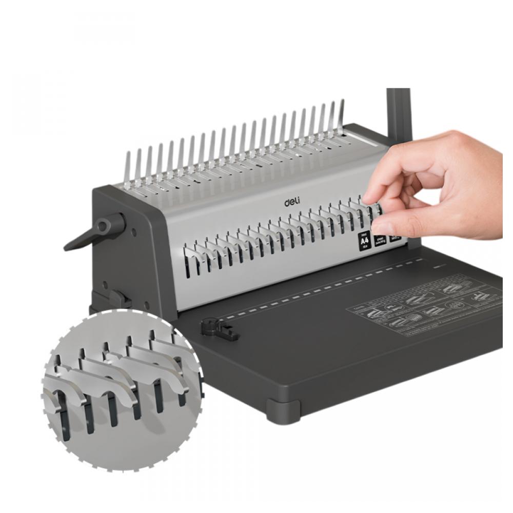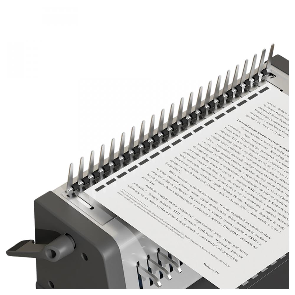 Это функциональное устройство предназначено для быстрого создания переплетов и рассчитано на регулярное использование в офисе или дома. Механизм справляется с небольшими и средними объемами бумаги, пробивая листы ровно и без лишних усилий. Компактный дизайн позволяет легко разместить прибор на рабочем столе, не занимая много места.