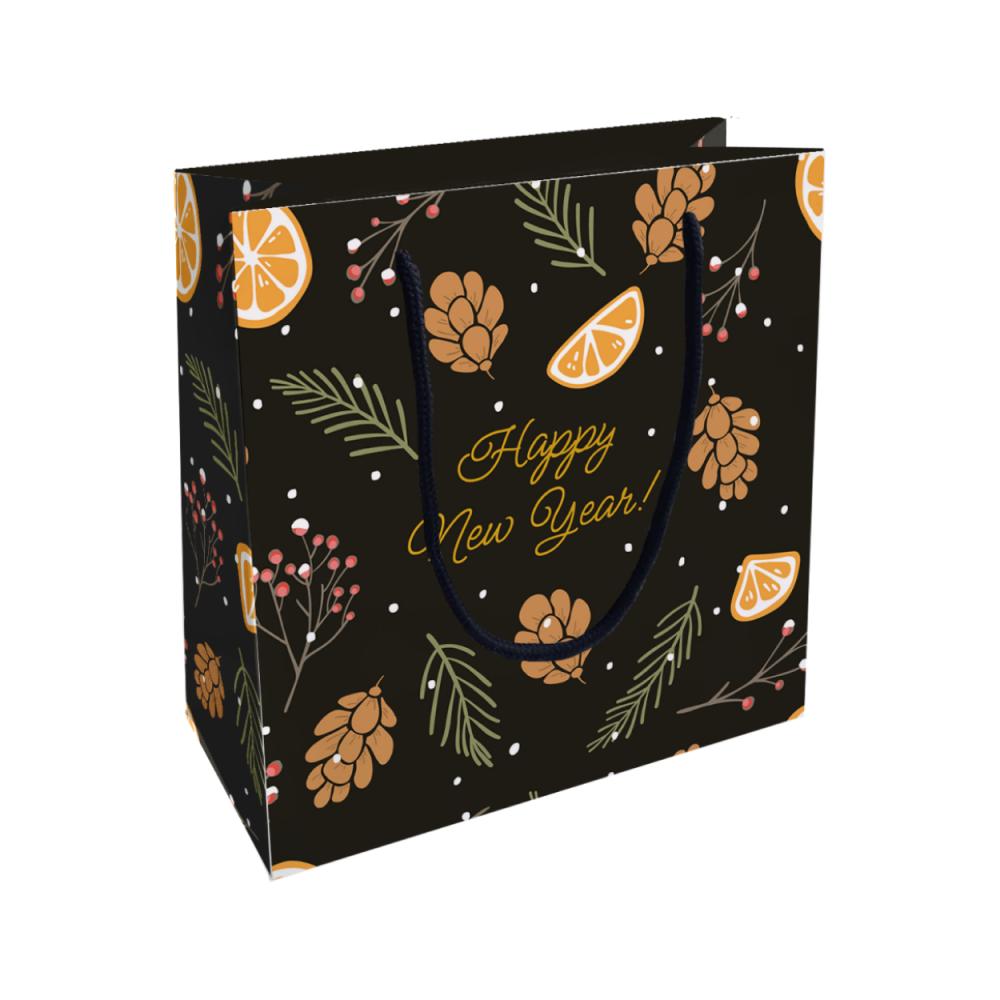 Подарочный пакет с подгибкой и верёвочными ручками — это практичное и одновременно изысканное решение для праздничной упаковки. Он изготовлен из плотного картона 200 г/м², что обеспечивает прочность и аккуратный внешний вид, а матовая ламинация придаёт поверхности мягкий благородный блеск и защищает от повреждений. Размер 20×20×8 см делает пакет удобным для компактных подарков, а грузоподъёмность 2–3 кг позволяет упаковать как лёгкие сувениры, так и более весомые презенты. Новогодняя тематика оформления создаёт атмосферу праздника и ожидания чуда, превращая вручение подарка в яркий и запоминающийся момент.