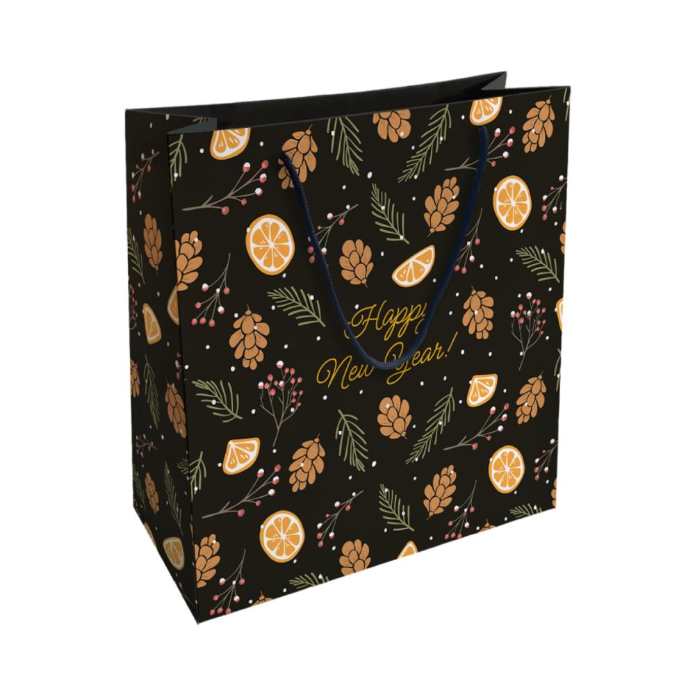 Подарочный пакет с новогодней тематикой — это стильное и надёжное решение для праздничной упаковки. Он выполнен из плотного картона толщиной 200 г/м², что обеспечивает прочность и устойчивость к повреждениям. Матовая ламинация придаёт поверхности элегантный вид, защищает от влаги и делает пакет приятным на ощупь. Размеры 32×32 см с глубиной 12 см позволяют удобно разместить как компактные, так и более объёмные подарки. Усиленное дно с подгибкой обеспечивает дополнительную жёсткость, а прочные верёвочные ручки гарантируют комфортную переноску. Пакет выдерживает нагрузку до 3–4 кг, идеально подходя для праздничных презентов. Новогодний дизайн создаёт атмосферу уюта и волшебства, делая ваш подарок ещё более запоминающимся.