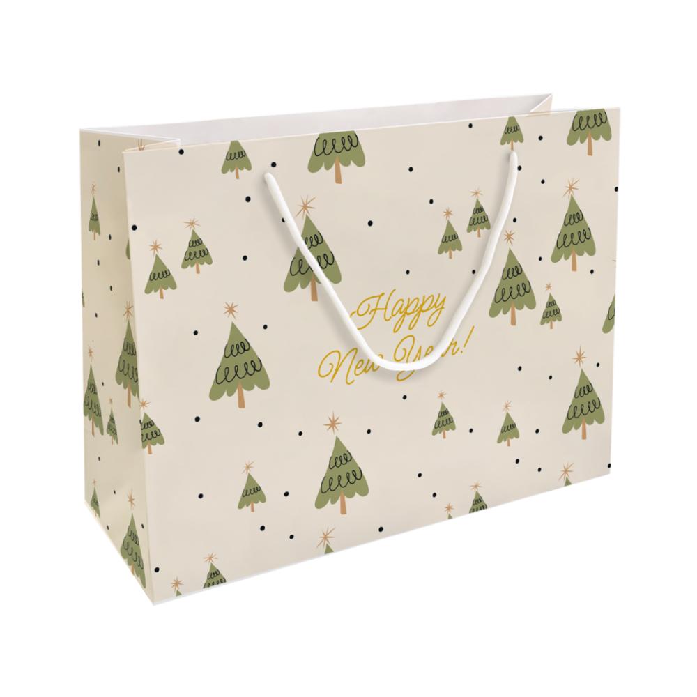 Пакет бумажный подарочный 36*26*12 см "Елки" молочный
