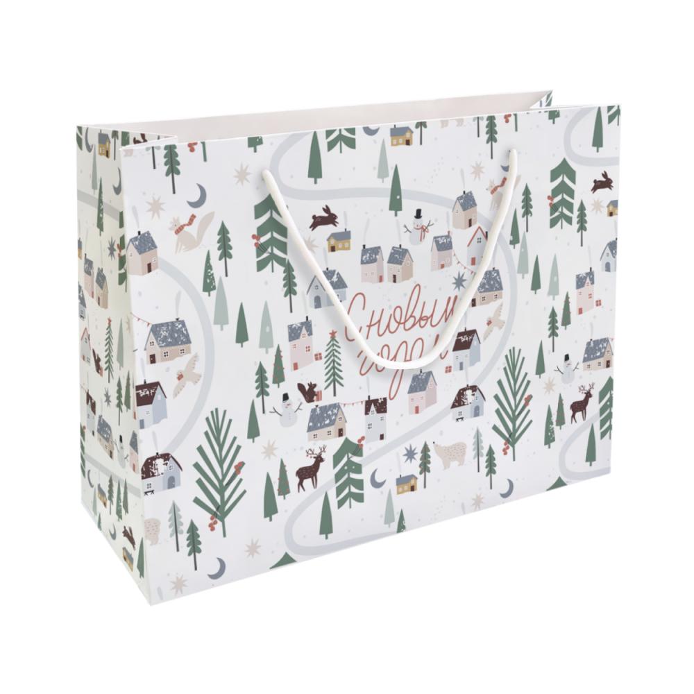 Подарочный пакет с новогодней тематикой — это практичное и стильное решение для праздничной упаковки. Он изготовлен из прочного картона плотностью 200 г/м², что обеспечивает надёжность и устойчивость к повреждениям. Матовая ламинация придаёт поверхности элегантный внешний вид, защищает от влаги и делает пакет приятным на ощупь. Размеры 36×26 см с глубиной 12 см позволяют удобно разместить как компактные, так и более объёмные подарки. Усиленное дно с подгибкой обеспечивает дополнительную жёсткость, а прочные верёвочные ручки гарантируют комфортную переноску. Пакет выдерживает нагрузку до 3–4 кг, идеально подходя для праздничных сюрпризов. Яркий новогодний дизайн создаёт атмосферу уюта и волшебства, делая каждый подарок особенно запоминающимся.