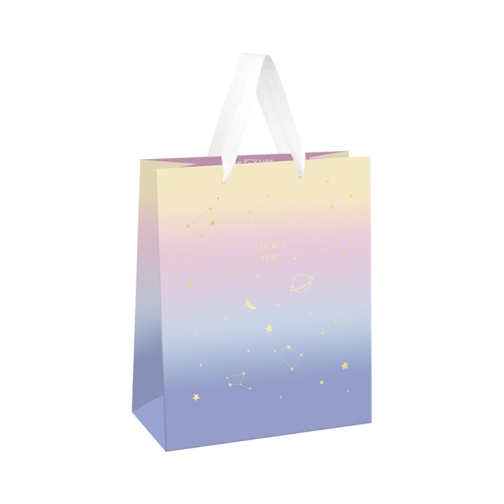 Подарочный пакет MESHU "Universe" – беспроигрышный способ преподнести подарок красиво. Размер подарочного пакета – 11*14*6,5 см. Изготовлен из плотного мелованного картона с глянцевой ламинацией. Дизайн пакета вдохновлен бескрайним космосом, что придает ему особую атмосферу. На лицевой стороне пакета изображен красивый рисунок, изображающий ночное небо с луной и звездами. Цветовая гамма включает в себя нежные оттенки синего и золотого, которые создают ощущение спокойствия и умиротворения. Получать подарки всегда приятно, а красиво оформленные подарки приятнее вдвойне! Эксклюзивный дизайн, разнообразие отделок и качество – отличительные черты продукции MESHU, воплотившиеся в подарочных пакетах. Ручки пакета – лента, которая отличается высокой прочностью и насыщенностью цвета. • Материал: мелованный картон; • Размер пакета: 11*14*6,5 см; • Вид ручек: лента