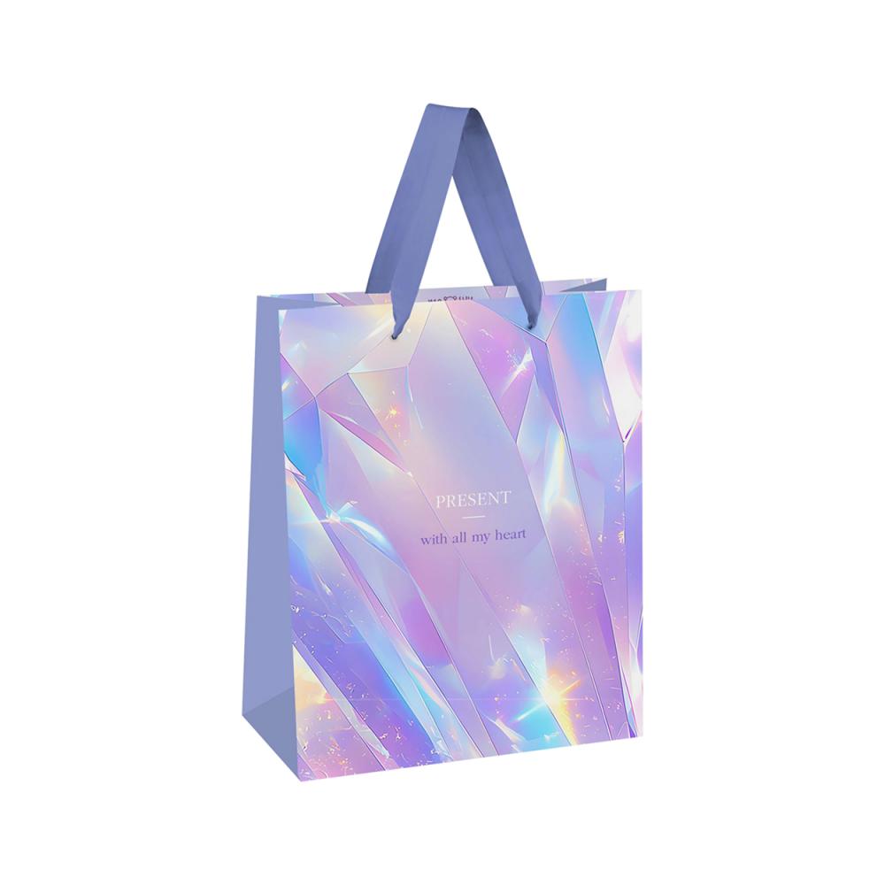 Пакет MESHU "Diamond" поможет сделать подарок ярким и запоминающимся. Размер изделия — 18х23х10 см. Пакет изготовлен из плотного мелованного картона. Дизайн разработан специально для бренда MESHU. Рисунок выглядит ярко благодаря высокому качеству печати. В отделке используется голографическая ламинация. Ручки сделаны из ленты, которая отличается высокой прочностью и насыщенностью цвета.