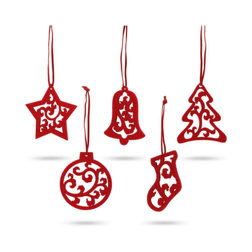 Набор новогодних игрушек "Jubany" от известного бренда hidea. Игрушки станут стильным украшением для Вашей новогодней елки и помогут создать праздничное настроение. В набор входит 5 игрушек разной формы, изготовленных из войлока красного цвета. Изделия оснащены тесьмой для подвешивания. Набор может также использоваться для украшения подарочной упаковки. Материал изделия - войлок. В наборе 5 украшений. Размер изделия - 80x80x3 мм.