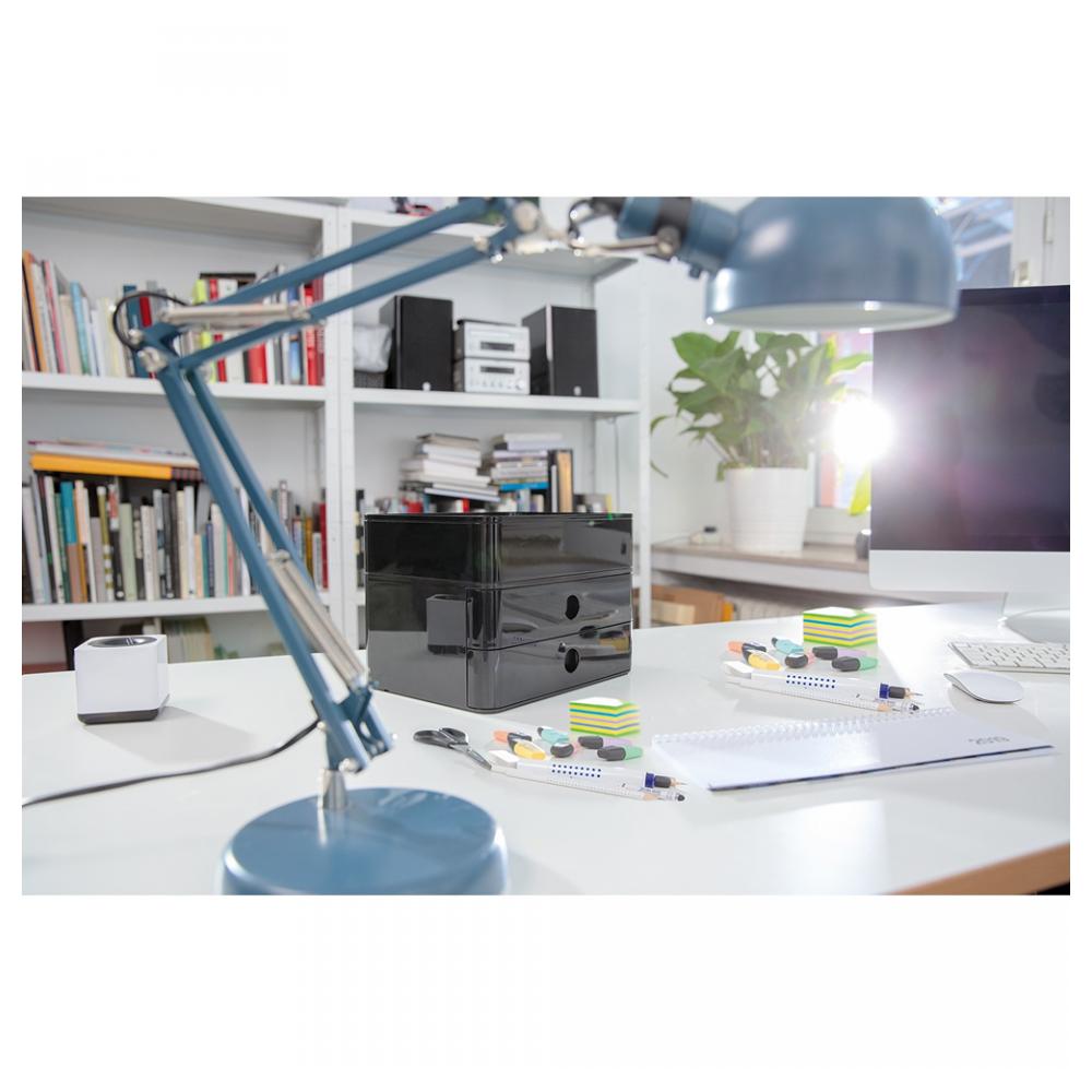 Стеллаж с двумя ящиками и съемными разделителями премиум-качества. Уникальный и инновационный дизайн с глянцевой отделкой для широкого спектра применений: в офисе, на совещаниях или дома. Ящики с плавным ходом и съёмными разделителями для идеальной организации пространства. В основании предусмотрены кабельные каналы. Не скользит благодаря удобным для мебели резиновым ножкам. При необходимости можно складывать друг на друга с другими ящичками Изготовлен из высококачественного, особо прочного АБС-пластика