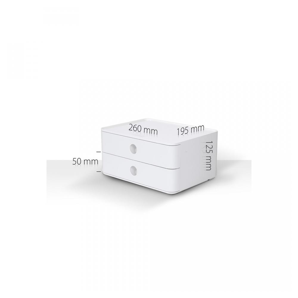 Стеллаж с двумя ящиками и съемными разделителями премиум-качества. Уникальный и инновационный дизайн с глянцевой отделкой для широкого спектра применений: в офисе, на совещаниях или дома. Ящики с плавным ходом и съёмными разделителями для идеальной организации пространства. В основании предусмотрены кабельные каналы. Не скользит благодаря удобным для мебели резиновым ножкам. При необходимости можно складывать друг на друга с другими ящичками Изготовлен из высококачественного, особо прочного АБС-пластика