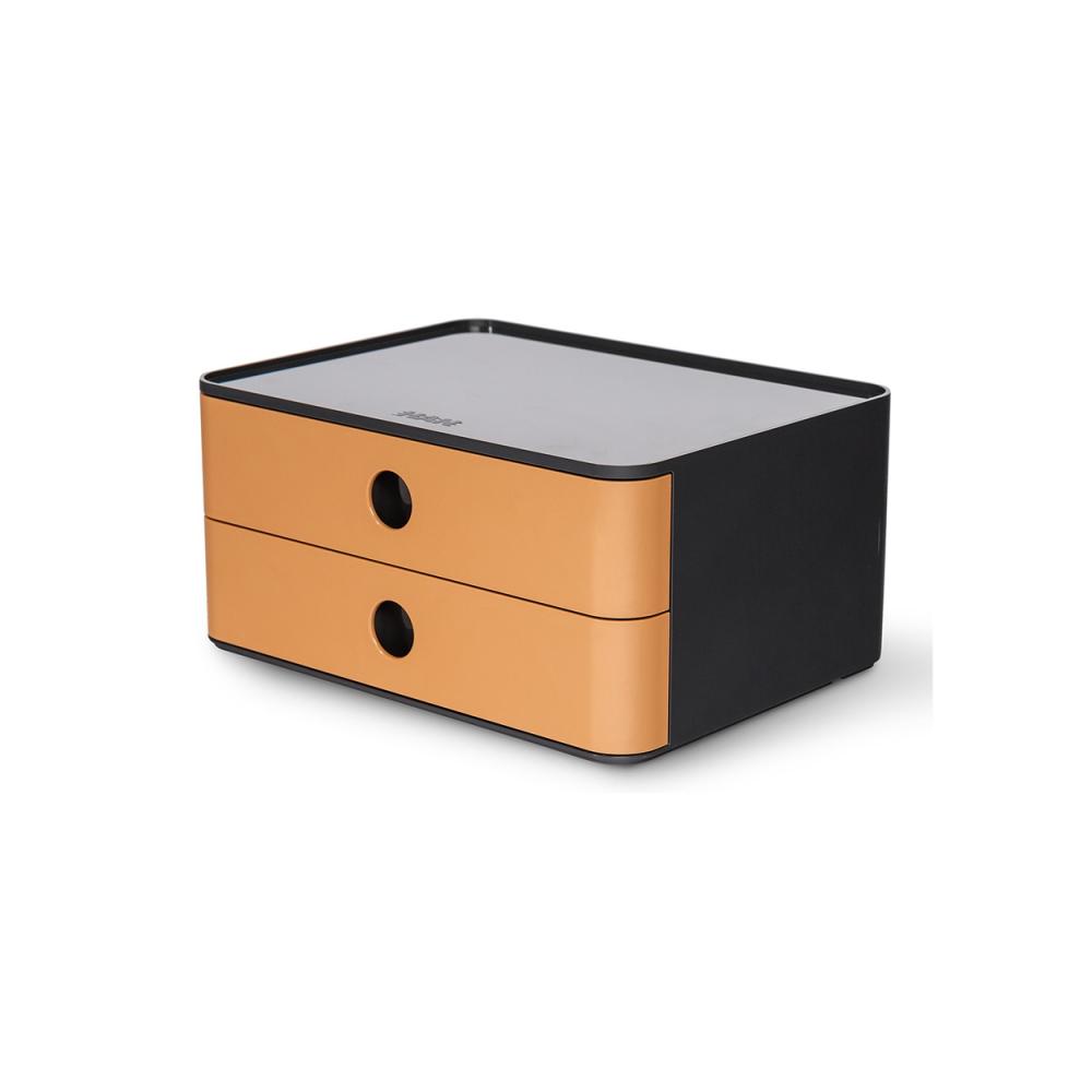 Стеллаж с двумя ящиками и съемными разделителями премиум-качества. Уникальный и инновационный дизайн с глянцевой отделкой для широкого спектра применений: в офисе, на совещаниях или дома. Ящики с плавным ходом и съёмными разделителями для идеальной организации пространства. В основании предусмотрены кабельные каналы. Не скользит благодаря удобным для мебели резиновым ножкам. При необходимости можно складывать друг на друга с другими ящичками Изготовлен из высококачественного, особо прочного АБС-пластика
